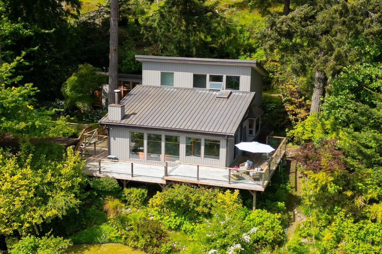Bask in the sunrise and soak up the views from this private and gorgeous Bowen home. Sitting on an acre in Dorman Bay and very close to Snug Cove, this much-loved and well-maintained home features two-to-three bedrooms, stunning views east across the water to Vancouver, and a beautiful design and style that is sought-after. Outside hosts a fenced garden, plenty of forest, and a detached and well-equipped 390 sf bungalow with 4-piece spa bathroom built in 2009 once used as a very successful licensed short term rental, but also perfect for extended family/guest visits. Within walking distance of popular swimming beach September Morn Beach, and close to Dorman Point Park.
