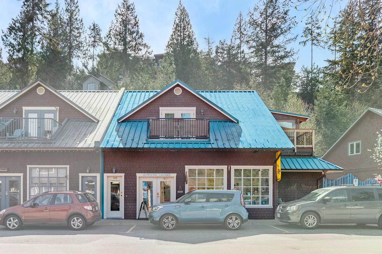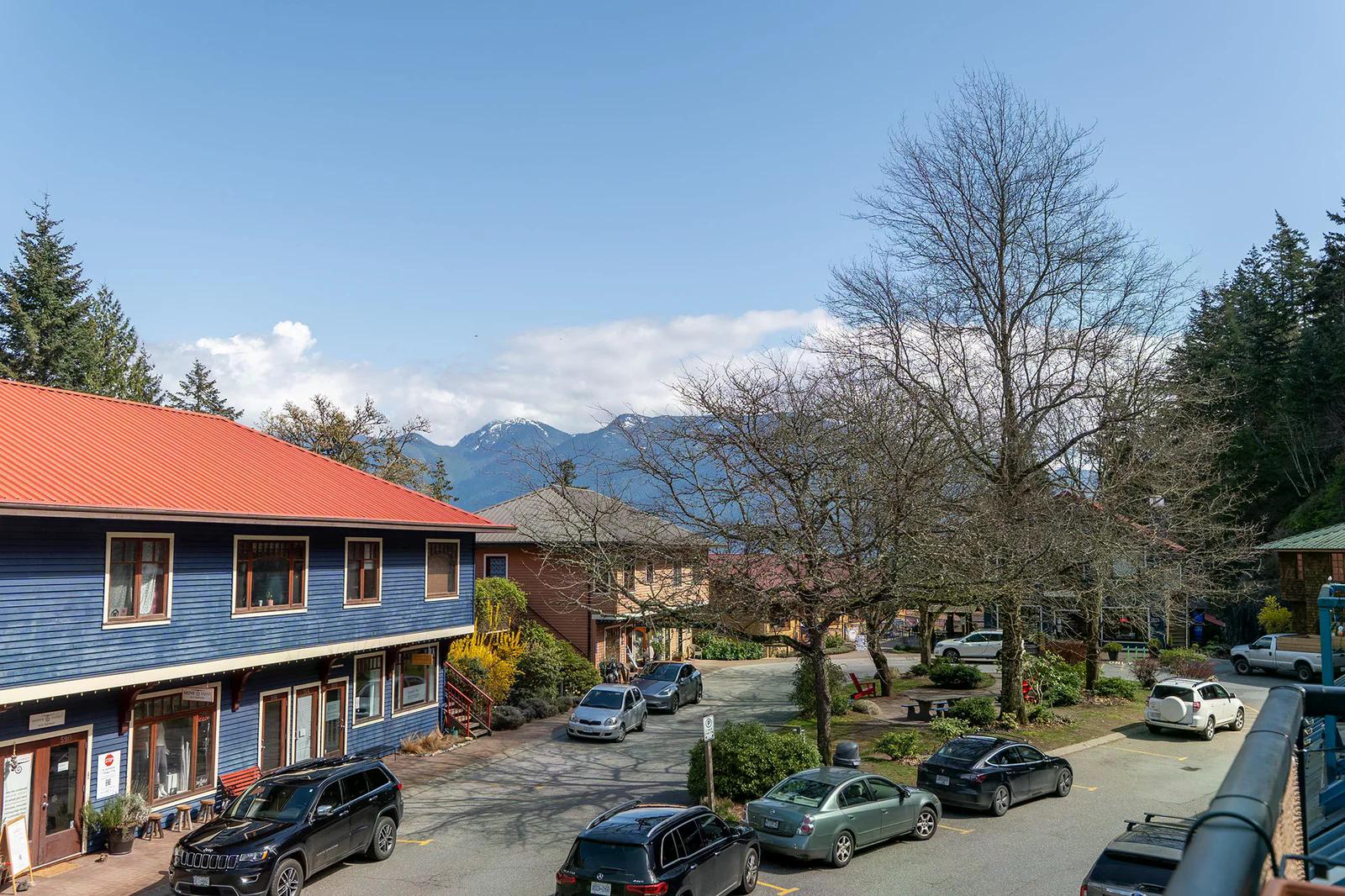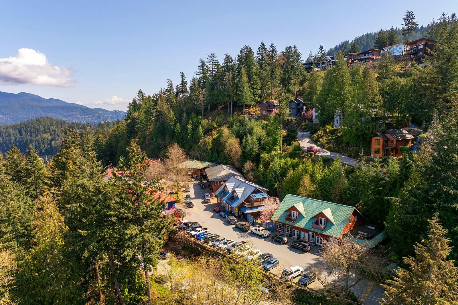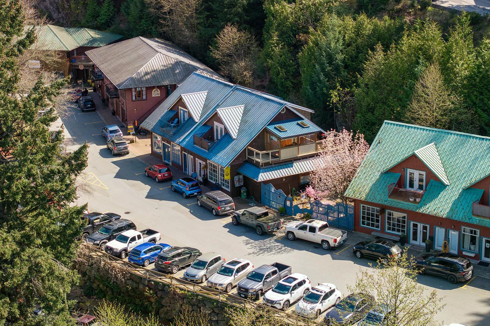 Artisan Square is a picturesque Bowen Island community of shops, galleries, wellness services, and small businesses. Several colourful low rise buildings combine commercial spaces with apartment-style homes.