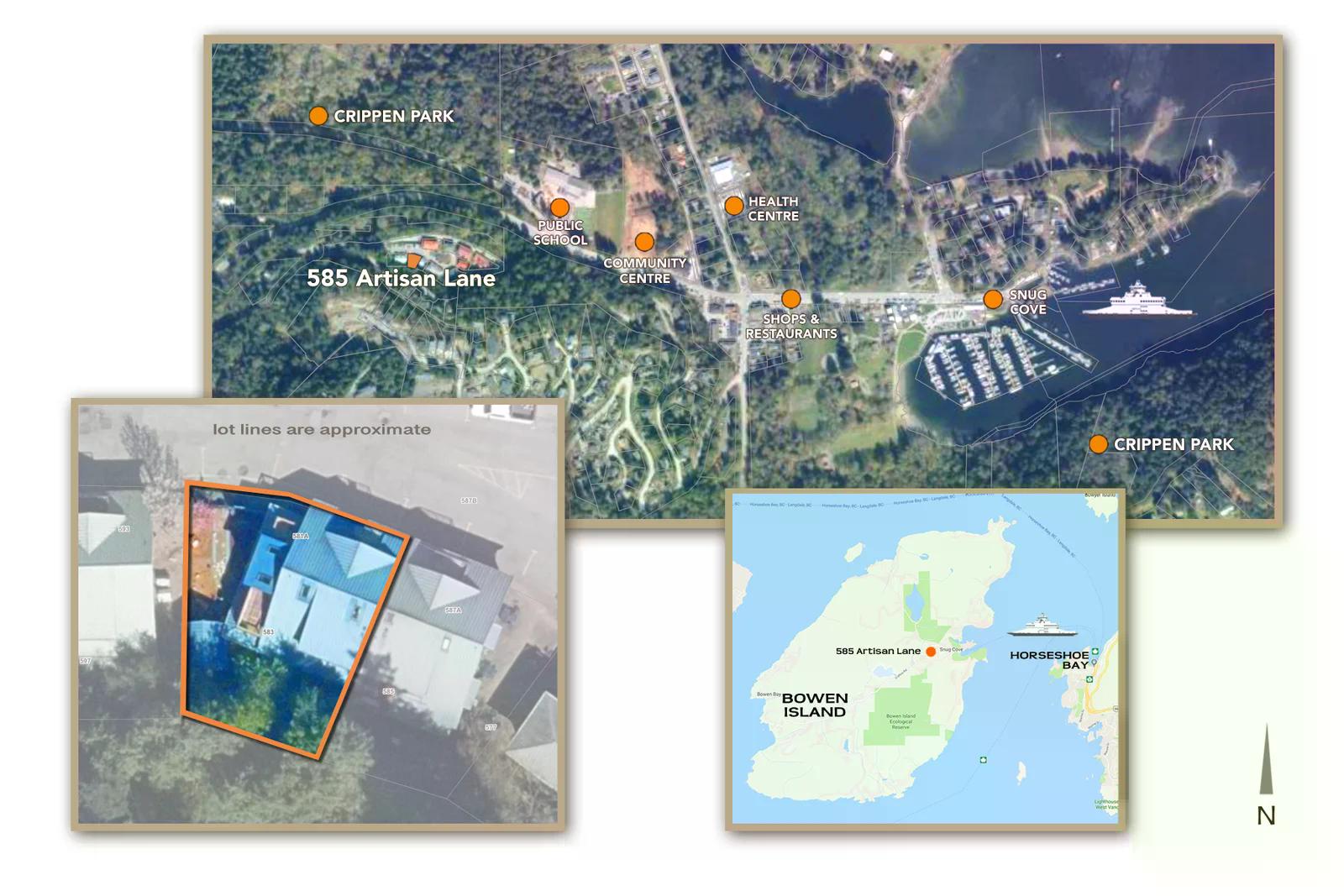 Making your home here means just a short walk to Snug Cove, the ferry, the public school, and a huge network of hiking trails. Artisan Eats Café, Cocoa West Chocolatier, Sangre De Fruta Botanicals, and The Burrow Creativity Studio, are just some of the businesses that make their home in Artisan Square.