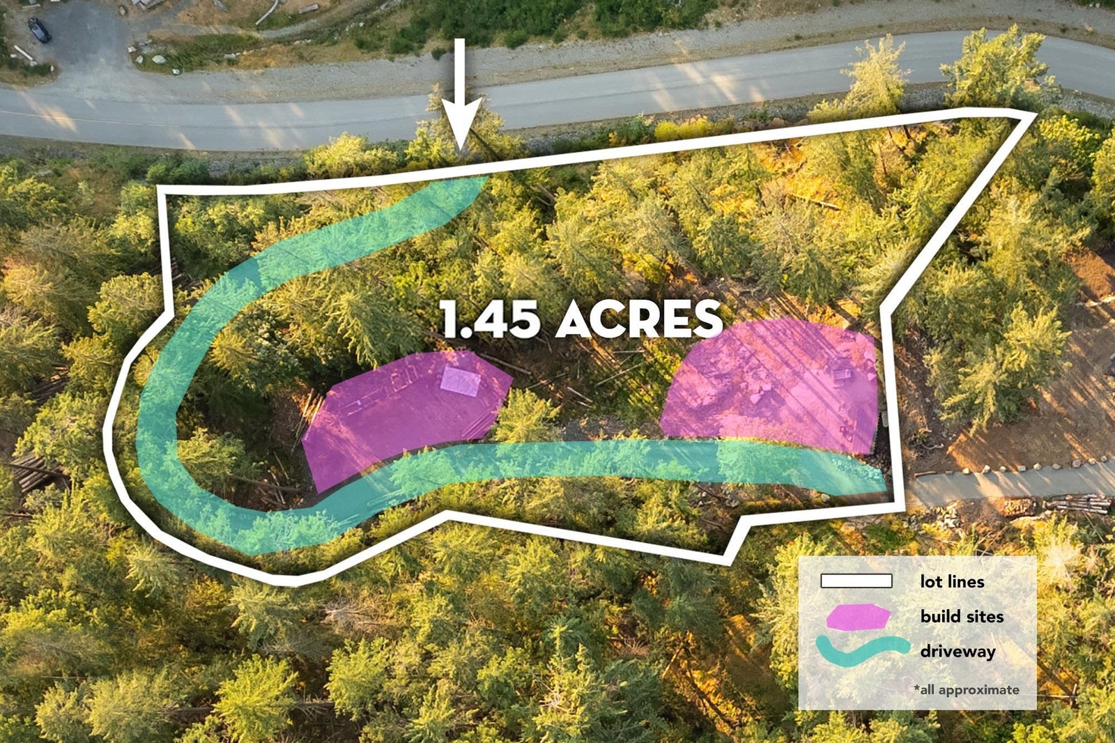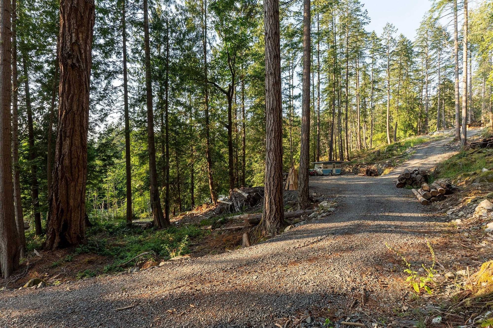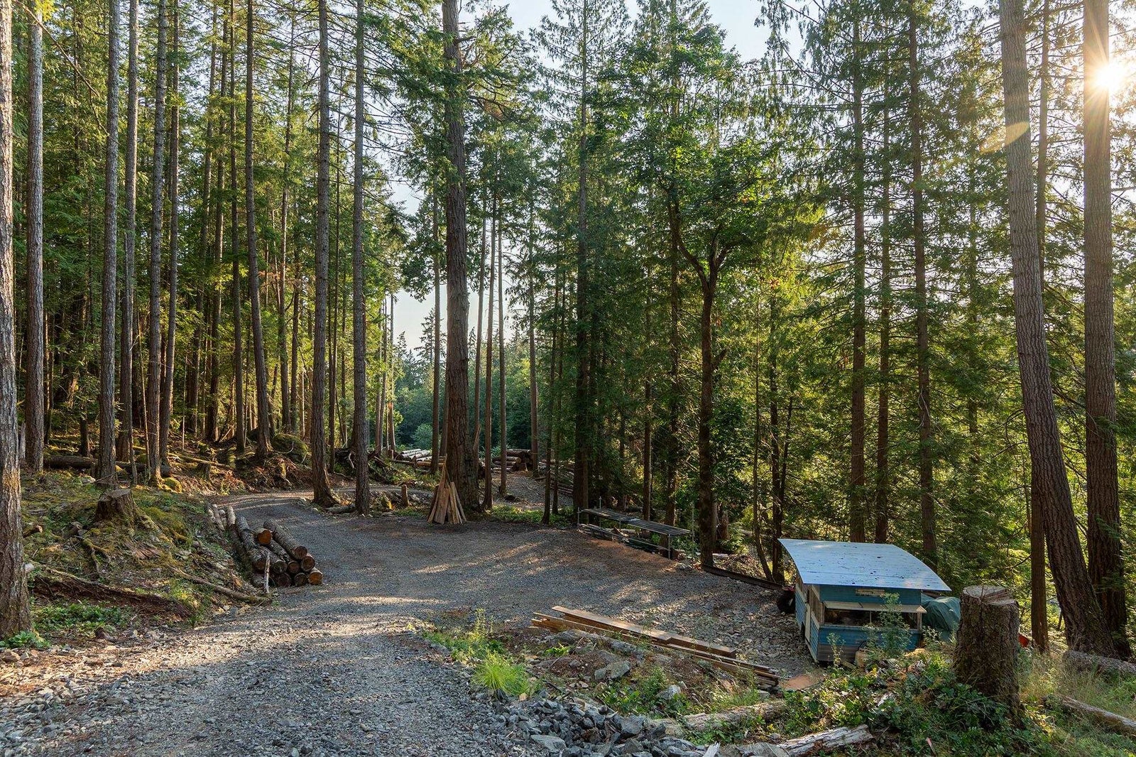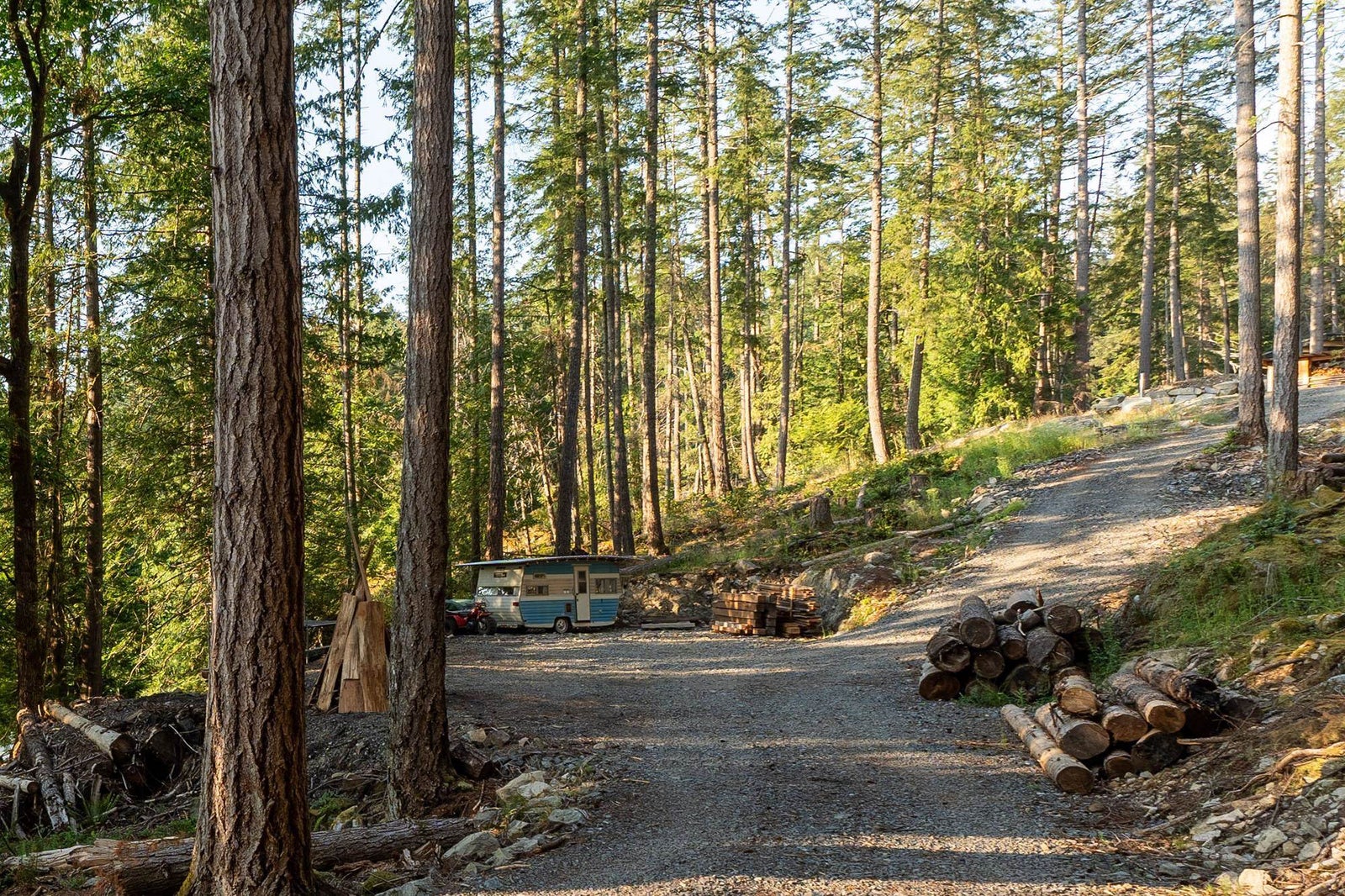 This very special 1.45 acre building lot on the sunset side of the island is the largest property currently available in the new Arbutus Ridge development. It has multiple cleared areas already prepped for your custom architectural home. Many tall trees still remain, however, creating a serene and private setting with distant coastal views. There is even an old-growth Douglas Fir that still stands proud. With the long, gently sloping driveway that’s in place you have easy access to most of the 1.45 acres to develop as you wish. Included is a classic 1970s travel trailer, and a large woodshed. Walk to King Edward Bay Beach in about 10 minutes, where a private mooring buoy awaits (included). Forest bathe for hours with hiking with trails at your doorstep.