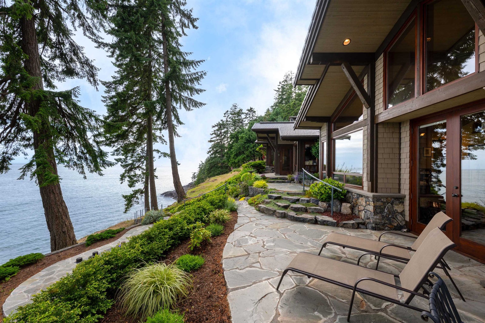 Welcome to an incredible,private, waterfront estate at the sunny south end of Bowen Island! Follow the winding country driveway, past the private pickleball court and the amazing gardens to the meticulously maintained Allan Peters designed home. With 3-4 bedrooms, an art studio, inviting kitchen and family room, living and dining room with vaulted ceilings, there are water views from every room. Meander towards the water, play a giant game of checkers, or go for a swim or paddleboard as the tide comes in off the waterside patio. With 150' of private frontage, this is one of the larger lots in Fairweather, 180 acres of park like forested land. Private viewings by appoint. with 24 hours min. notice.