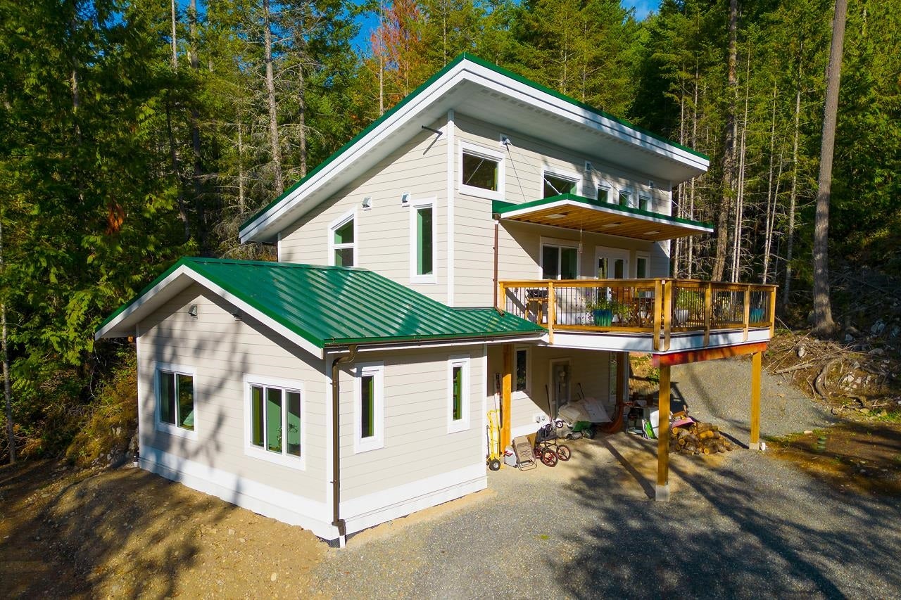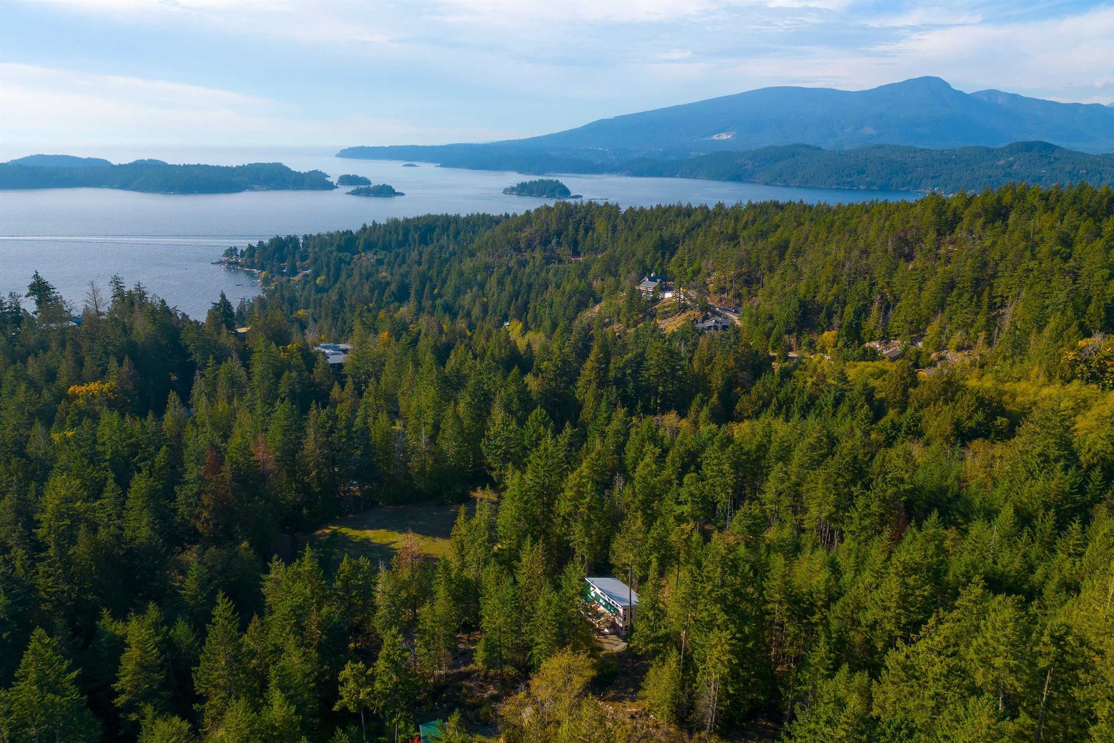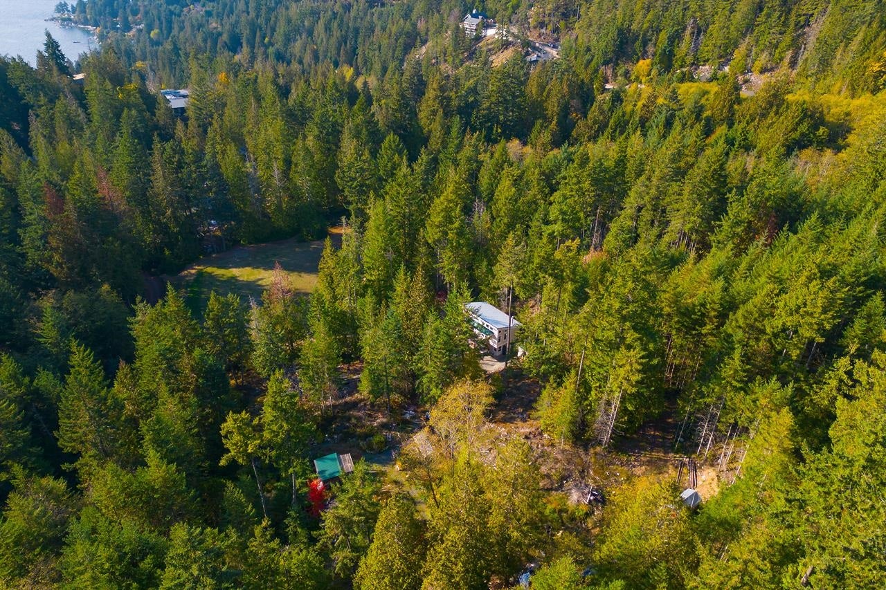 Bordering parks on two sides and forested crownland on a third, this property and home exude privacy. Non-strata, 3.38 acres, and built in 2023. The 1,500 sf home sits just above Aaron's Field, and features a reverse floor plan, sun-soaked deck off the open plan LR/DR/kitchen, and a rough in for an elevator. The fenced-in veggie garden features fire pit, pizza oven, green house and water collection into a large storage tank. There is a cleared, 2nd build site for another potential home up at the top of the property, and plenty of potential for hobby farming and living off the land. Close to trails down to Bowen Bay beach, up Mt Gardner, and more.