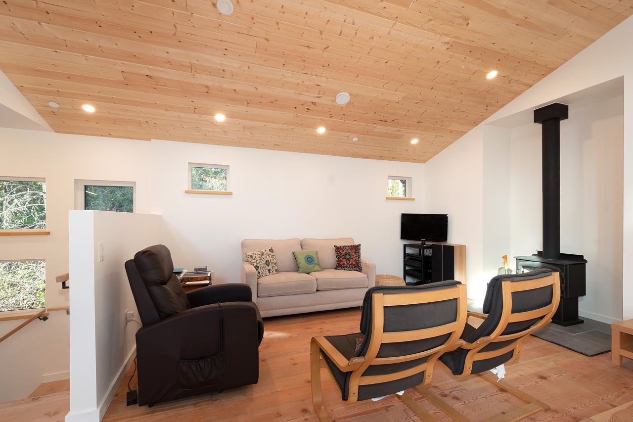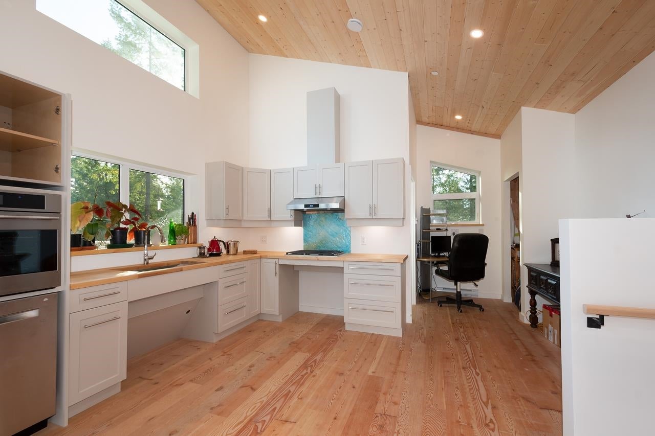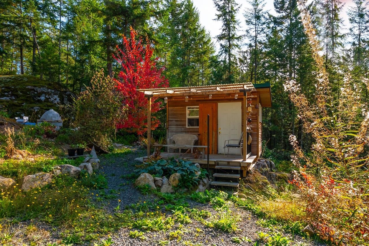 Bordering parks on two sides and forested crownland on a third, this property and home exude privacy. Non-strata, 3.38 acres, and built in 2023. The 1,500 sf home sits just above Aaron's Field, and features a reverse floor plan, sun-soaked deck off the open plan LR/DR/kitchen, and a rough in for an elevator. The fenced-in veggie garden features fire pit, pizza oven, green house and water collection into a large storage tank. There is a cleared, 2nd build site for another potential home up at the top of the property, and plenty of potential for hobby farming and living off the land. Close to trails down to Bowen Bay beach, up Mt Gardner, and more.