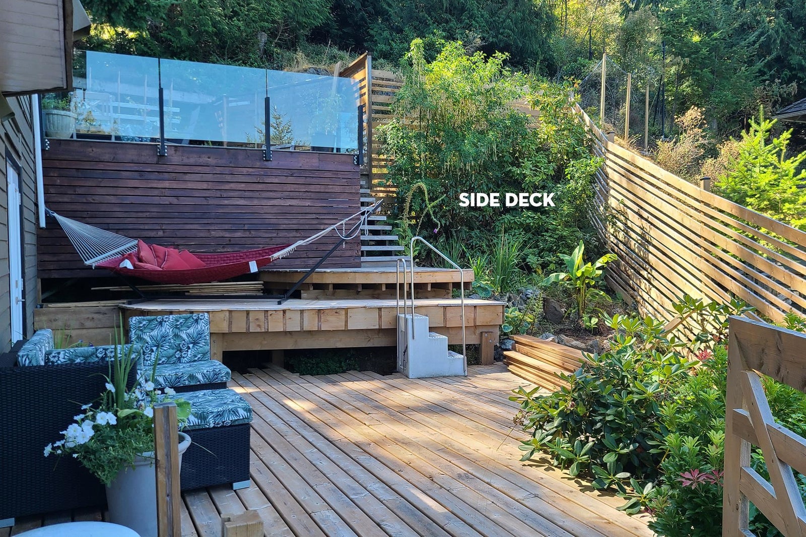 This superb family home on the sunset side of Bowen sits in a quiet cul-de-sac on the high side of the street for the best views. Across from the driveway the trailhead takes you in just minutes to beautiful Crayola Beach, a westside treasure. Entertaining is easy here with the 14’ kitchen island that can seat 8. Or spill out onto one of 5 different decks where you’ll be surrounded by native plants & perennials that create a haven for pollinators & birds. The main floor features an open plan kitchen/living/dining, plus the spacious Primary Suite with spa-like ensuite. Below are 4 more bedrooms and a 4-piece bath with heated floors. Large families and those who need work-from-home offices are the perfect fit for this well-loved home. BRAND NEW neighbourhood water lines and paved roads!