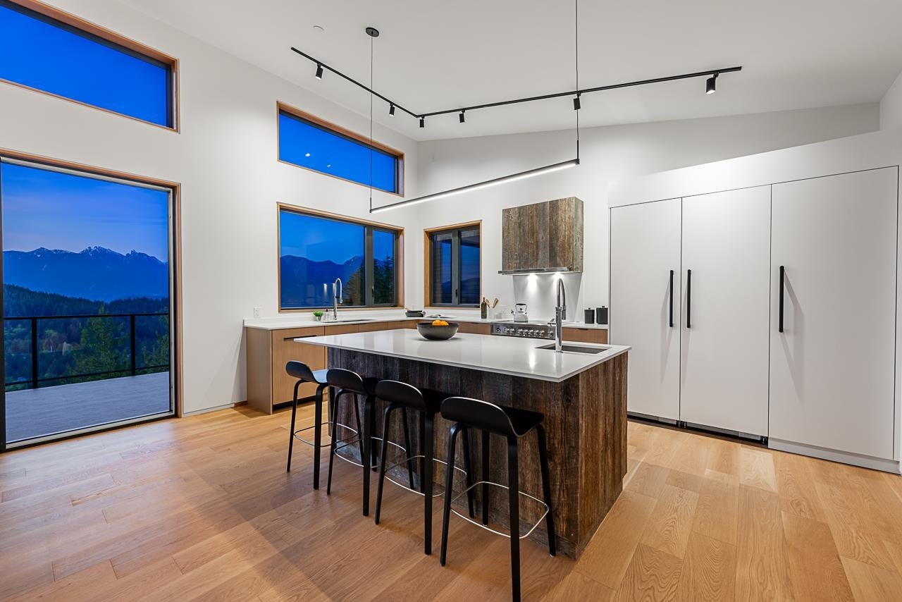 Perched at the very top of Cates Hill, this brand-new two-level home is thoughtfully designed to maximize breathtaking panoramic views of the mountains and ocean. Featuring 3 bedrooms and 3 bathrooms, the intelligently planned layout places all entertaining areas, decks, and bedrooms to take full advantage of the spectacular scenery. The open-concept main floor flows seamlessly from the kitchen and dining area onto a spacious, entertainment-sized deck—perfect for gatherings or quiet evenings enjoying the view. Also offering a large home office also designed to enjoy the views. The lower level offers 3 bedrooms and 2 bathrooms, including a generous primary suite with a spa-like ensuite featuring dual sinks, a large walk-in shower, and a well-sized walk-in closet.