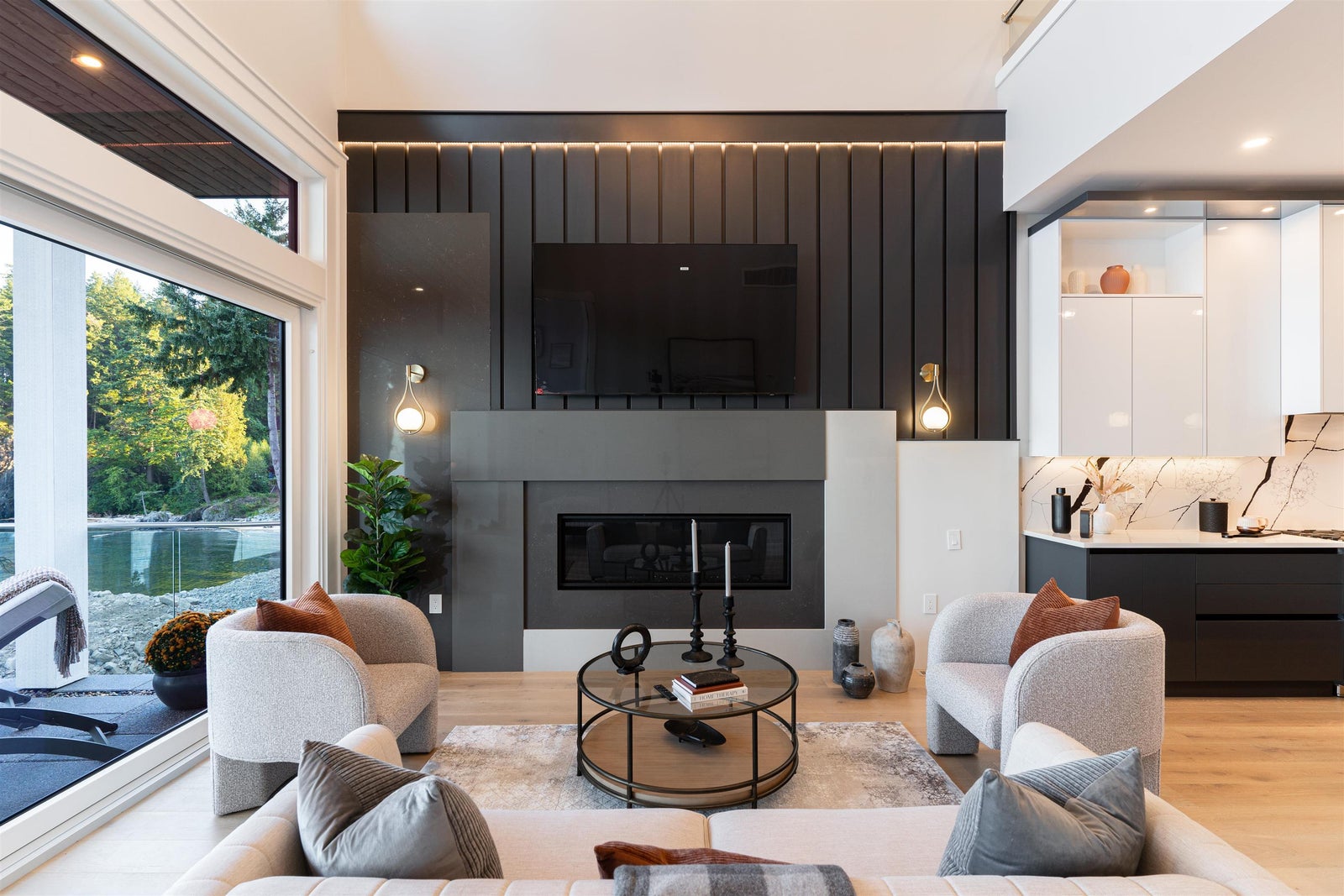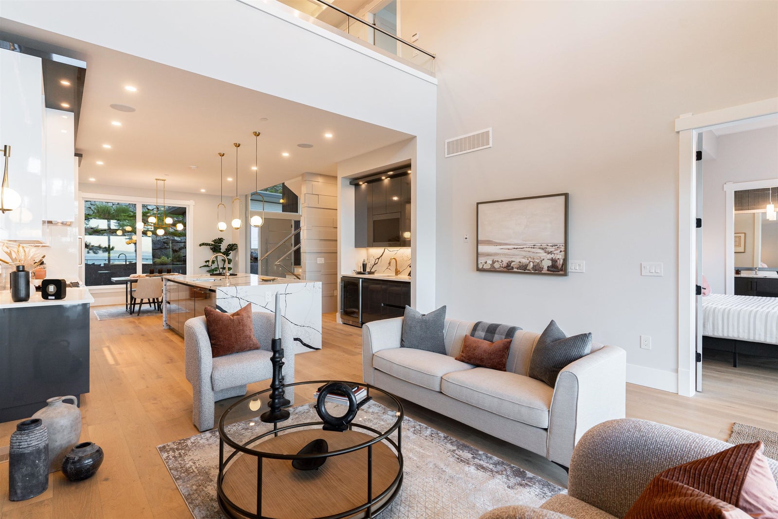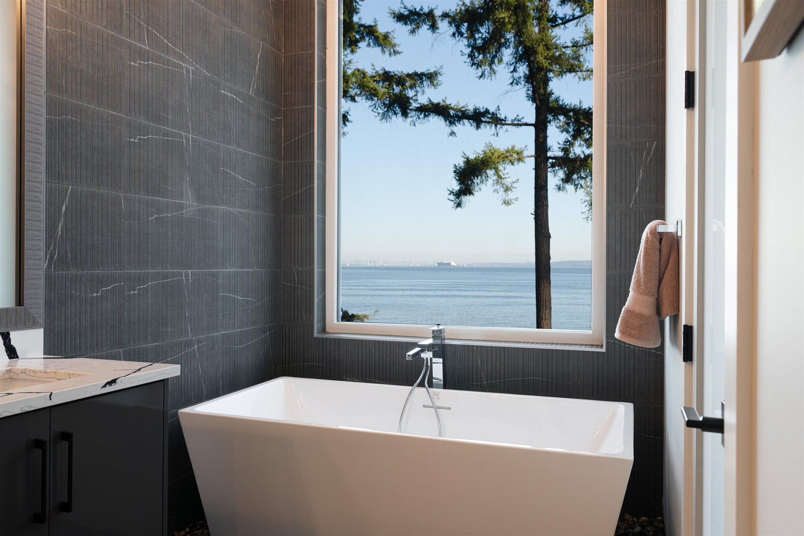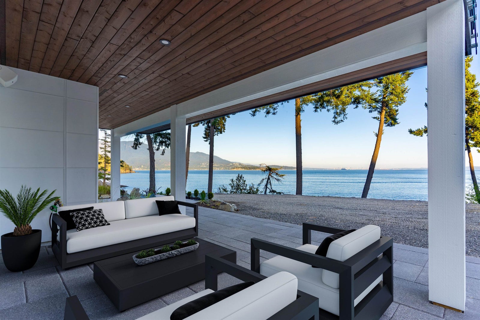 Discover the pinnacle of coastal living at Seymour Landing, where sunshine abounds and the Vancouver skyline blends with the shimmering sea. Be captivated by seasonal sightings of humpback whales and orcas gliding along the coast. This residence is set just 125 feet from the shoreline—a rare find on Bowen, where many waterfront homes are perched high and set back. From the double-height front entry, enjoy unobstructed views through the open-concept living, dining, and kitchen area straight to the ocean. Boasting upscale, distinctive finishes and a main-level primary suite with a steam shower, this newly built 3,600 sq ft home appeals to buyers with a taste for elegance. A quick trail walk brings you to the nearby golf course within minutes.