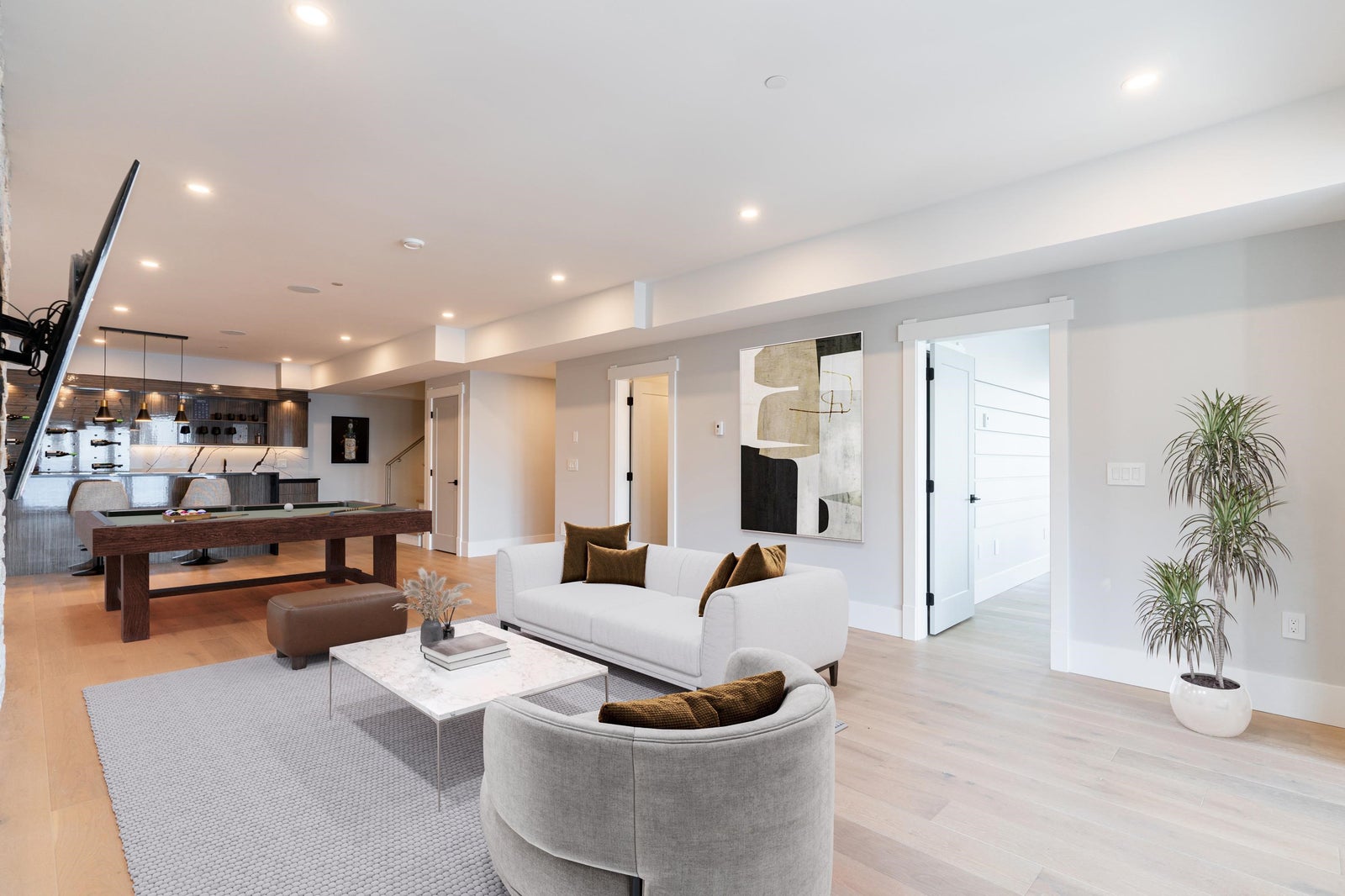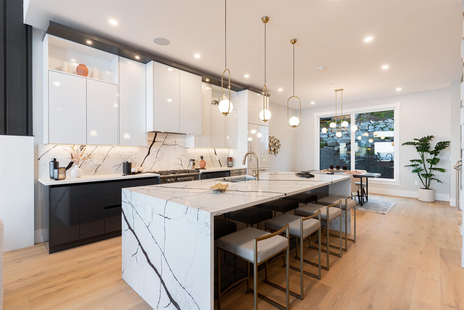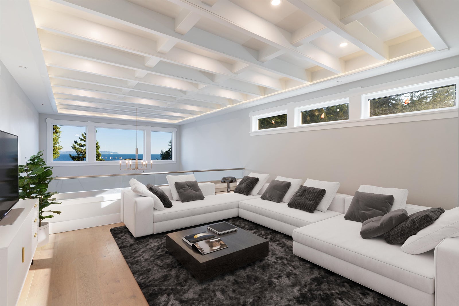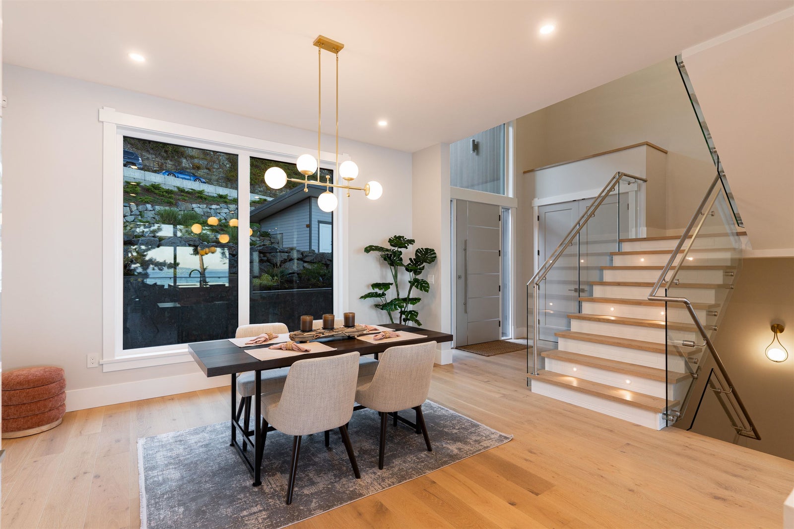 Discover the pinnacle of coastal living at Seymour Landing, where sunshine abounds and the Vancouver skyline blends with the shimmering sea. Be captivated by seasonal sightings of humpback whales and orcas gliding along the coast. This residence is set just 125 feet from the shoreline—a rare find on Bowen, where many waterfront homes are perched high and set back. From the double-height front entry, enjoy unobstructed views through the open-concept living, dining, and kitchen area straight to the ocean. Boasting upscale, distinctive finishes and a main-level primary suite with a steam shower, this newly built 3,600 sq ft home appeals to buyers with a taste for elegance. A quick trail walk brings you to the nearby golf course within minutes.