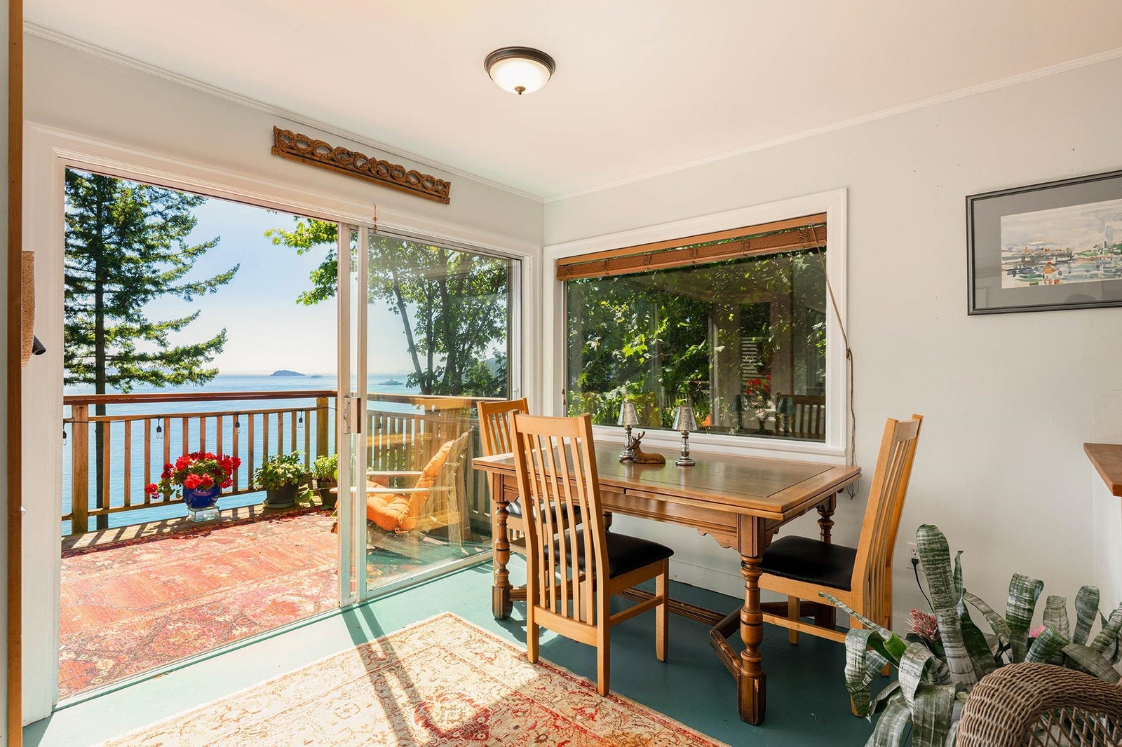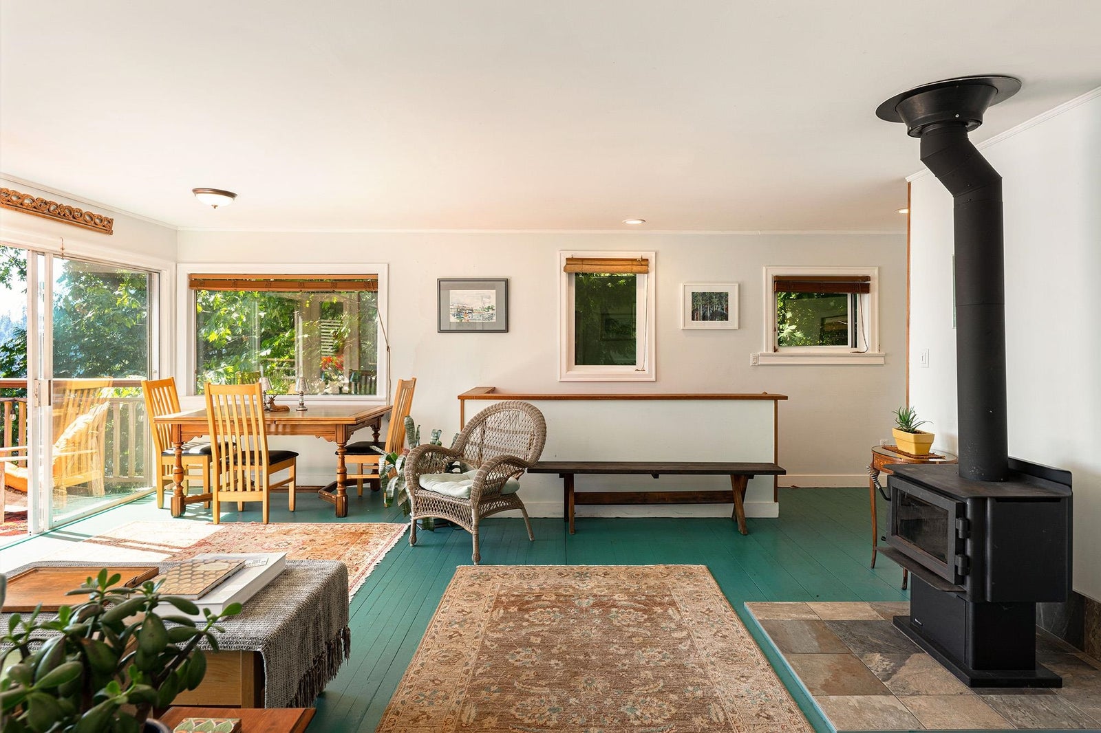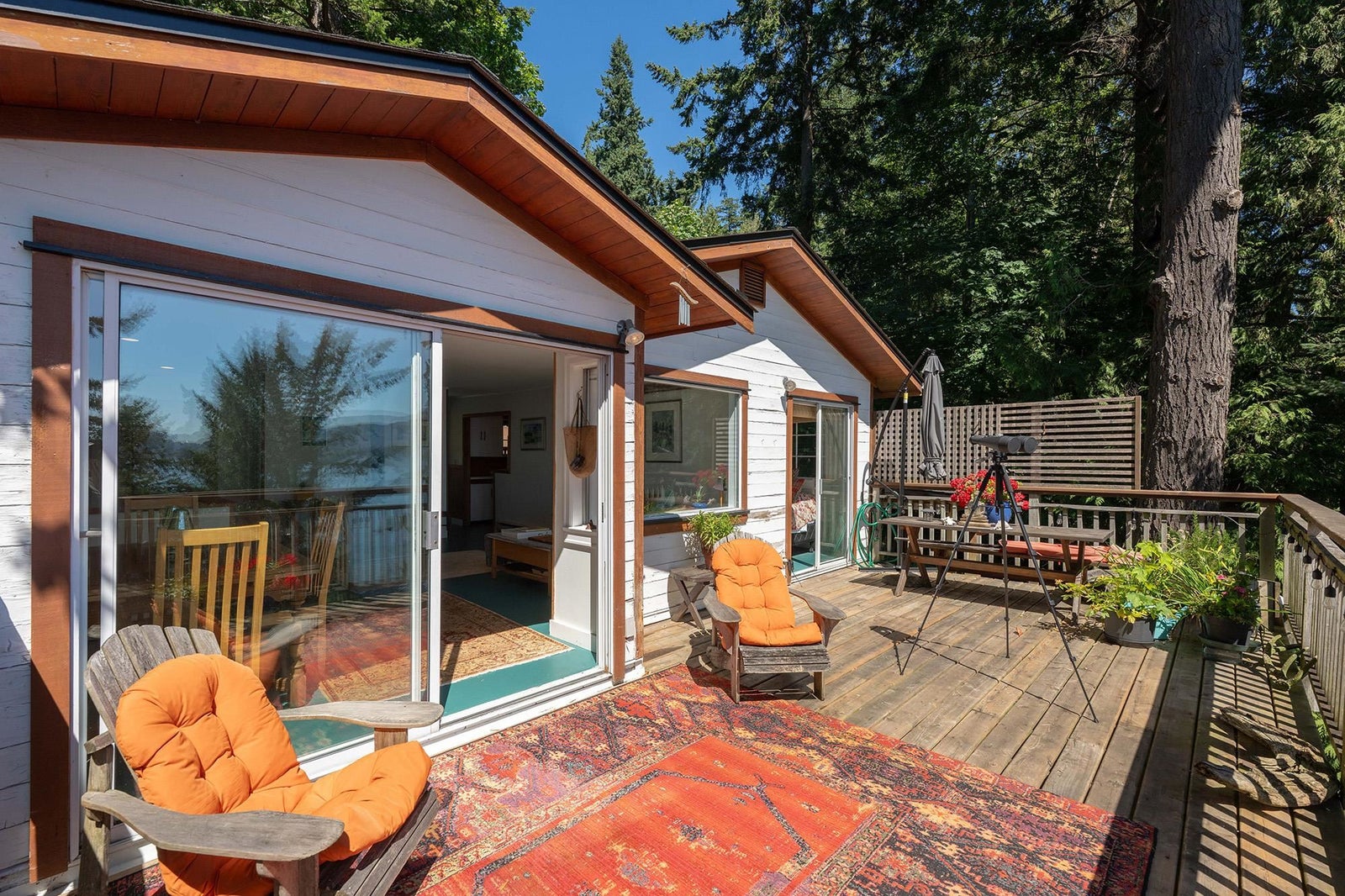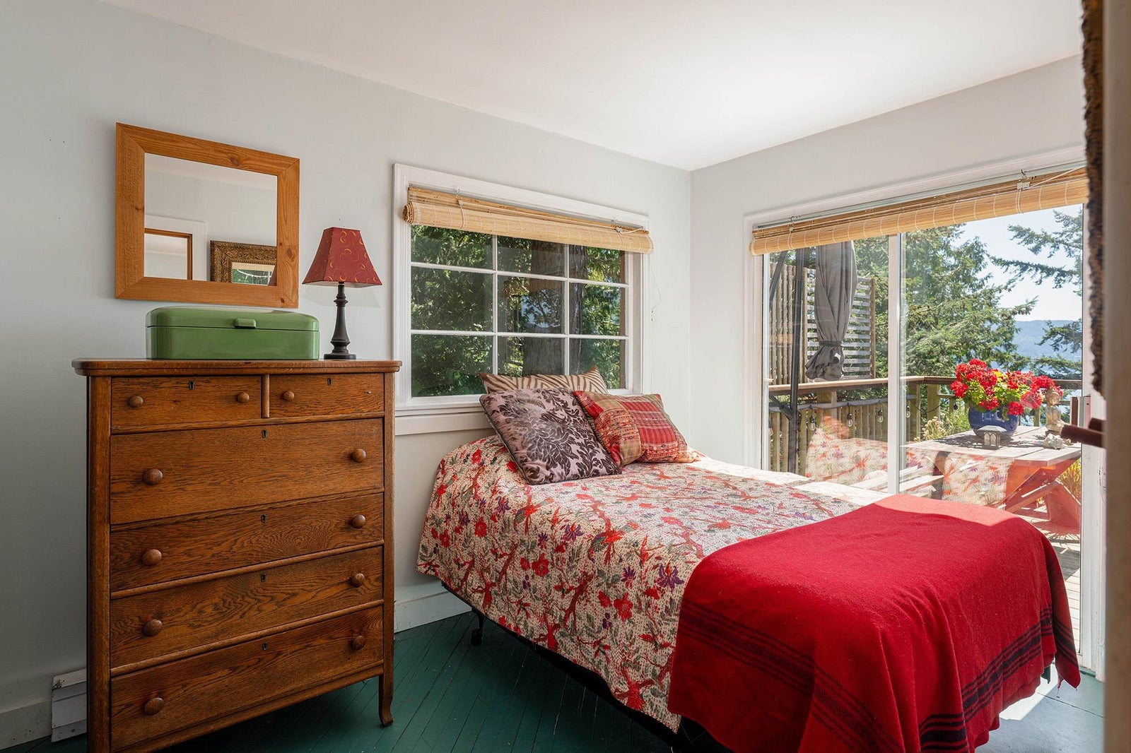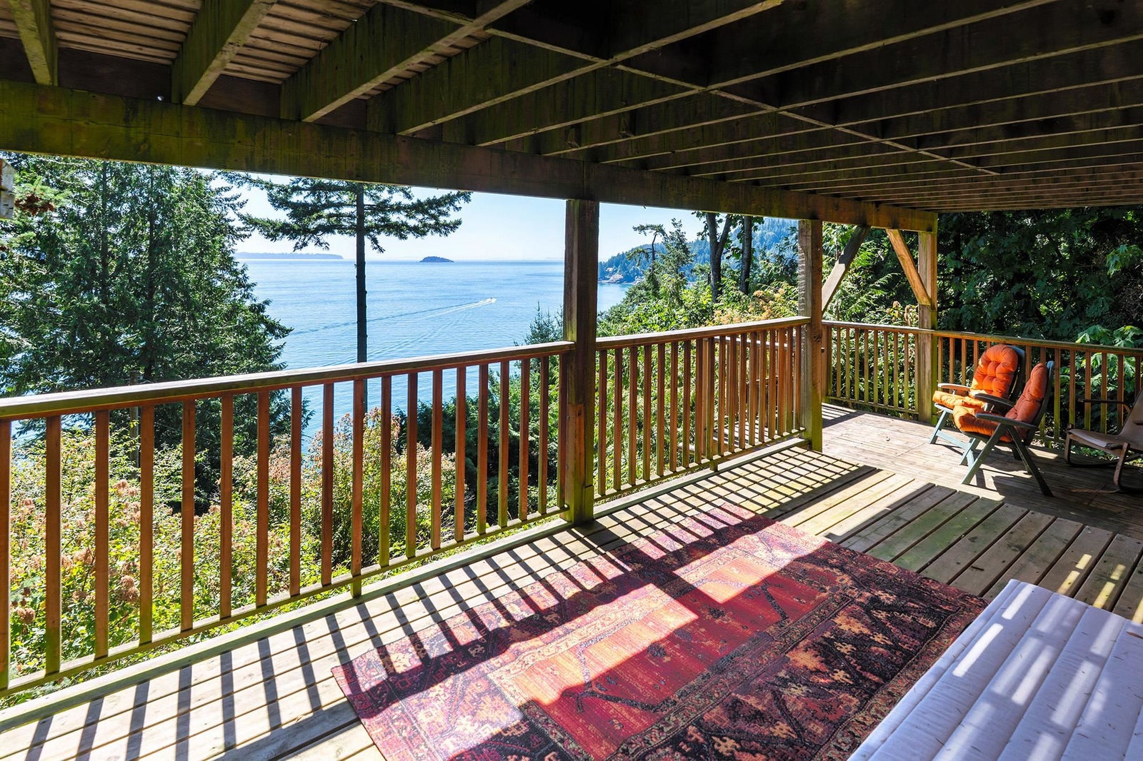 This charming & cozy vintage Bowen cottage is a perfect island getaway. From the front door you are welcomed with a beautiful view of the ocean looking out to Bowen’s shoreline and the Gulf Islands in the distance. The spacious south-facing deck is where you’ll spend time lounging with a book or gazing at the beauty of a full moon reflecting on the water. Inspired by the ocean there is a delightful deep turquoise front deck and painted wood floors on the main level. Downstairs is cheery with the terracotta painted floors and large windows with ocean views. Updates include a newer septic system, roof, gutters, and more. The community dock at Eagle Cliff beach (a 5 min. walk) is a popular place for locals to hang out and swim, and you can also tie up your dinghy during the summer season.