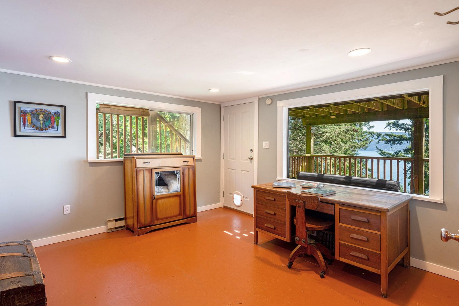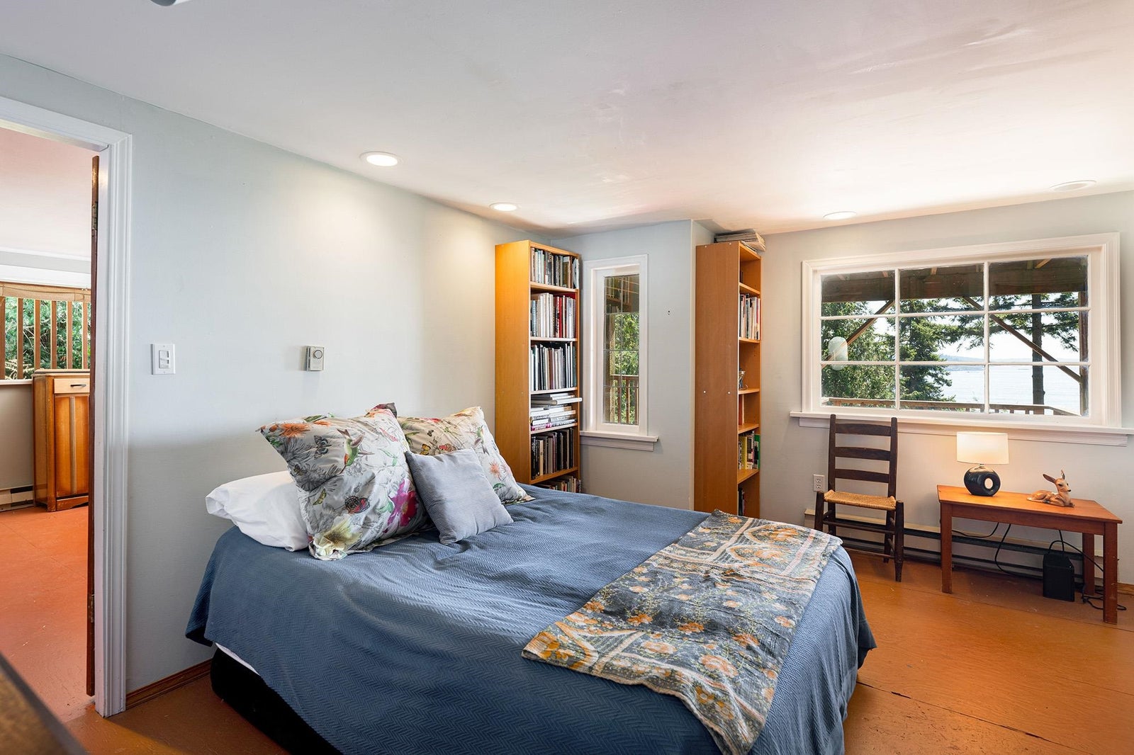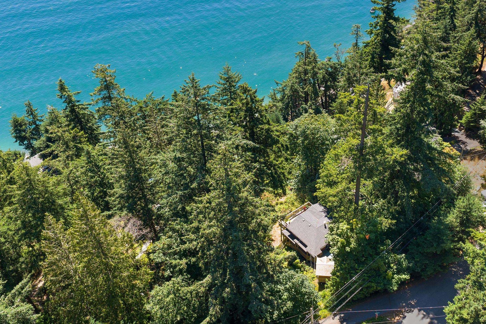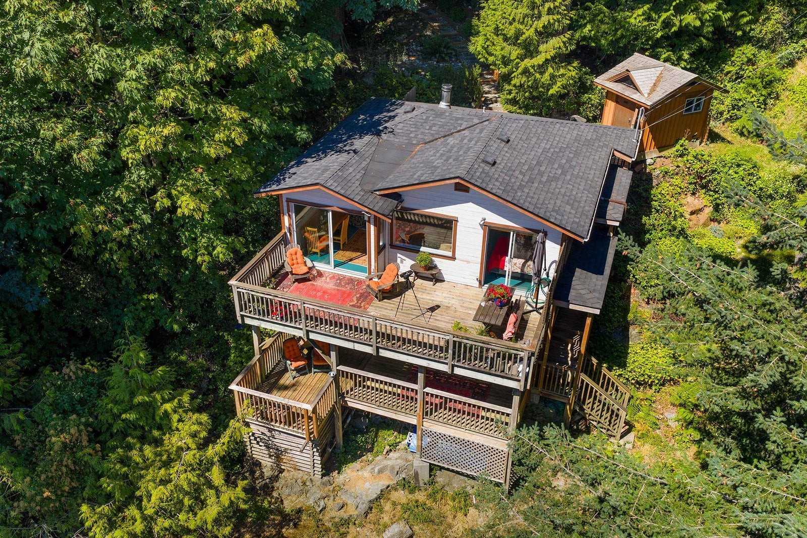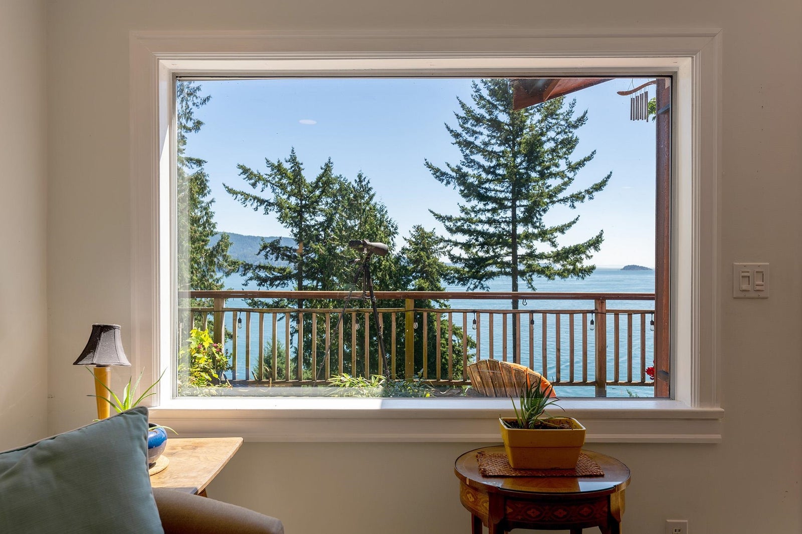 This charming & cozy vintage Bowen cottage is a perfect island getaway. From the front door you are welcomed with a beautiful view of the ocean looking out to Bowen’s shoreline and the Gulf Islands in the distance. The spacious south-facing deck is where you’ll spend time lounging with a book or gazing at the beauty of a full moon reflecting on the water. Inspired by the ocean there is a delightful deep turquoise front deck and painted wood floors on the main level. Downstairs is cheery with the terracotta painted floors and large windows with ocean views. Updates include a newer septic system, roof, gutters, and more. The community dock at Eagle Cliff beach (a 5 min. walk) is a popular place for locals to hang out and swim, and you can also tie up your dinghy during the summer season.
