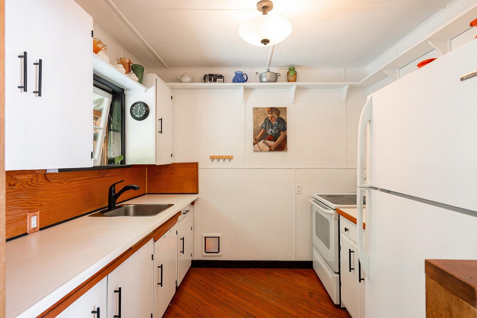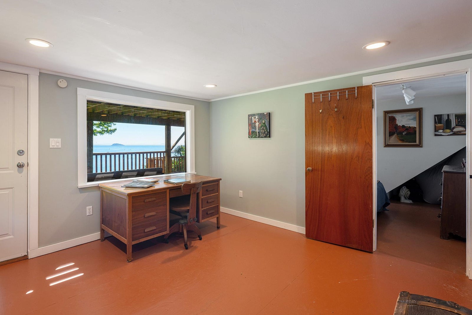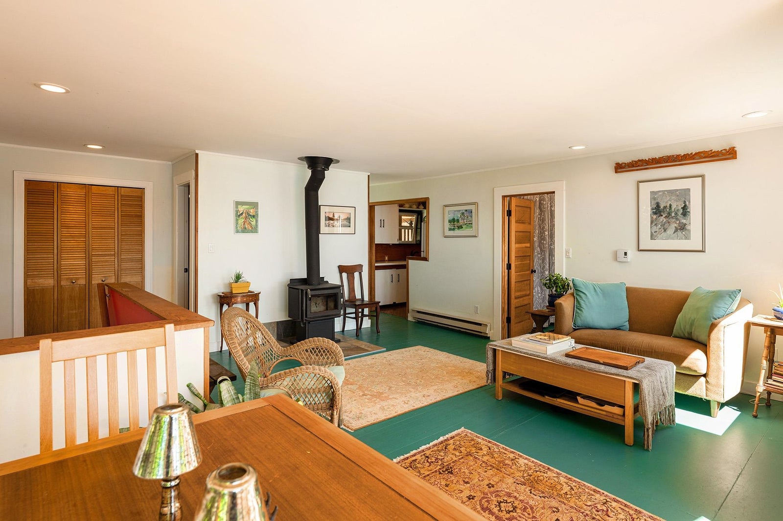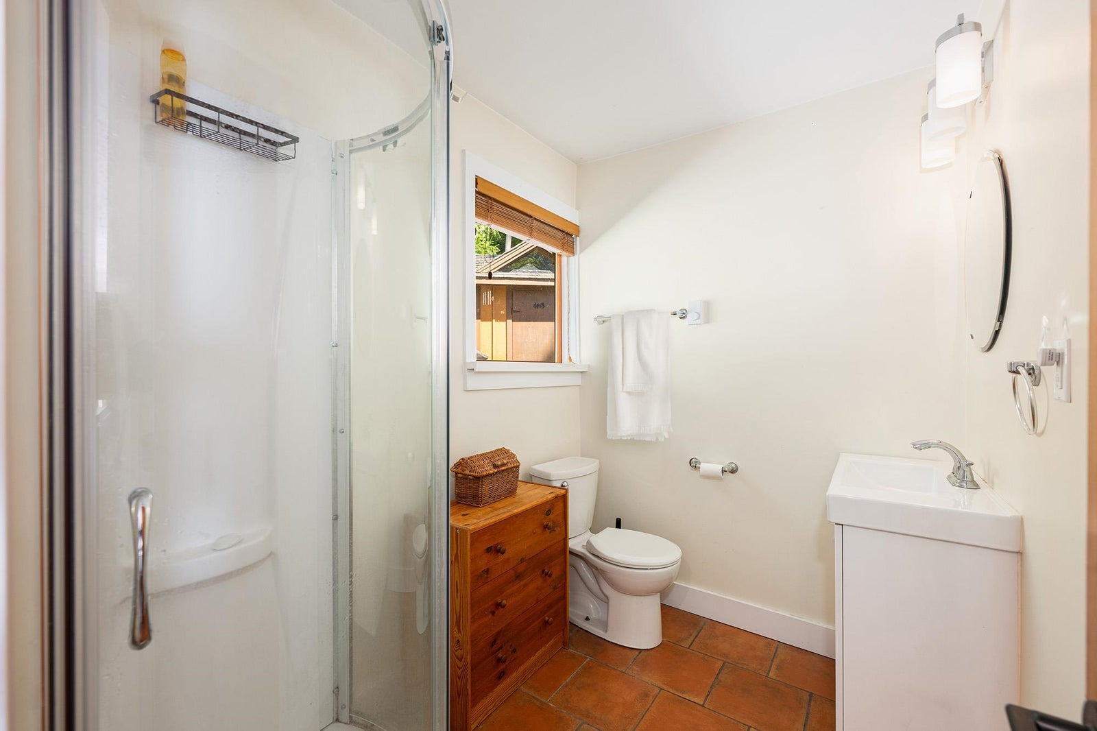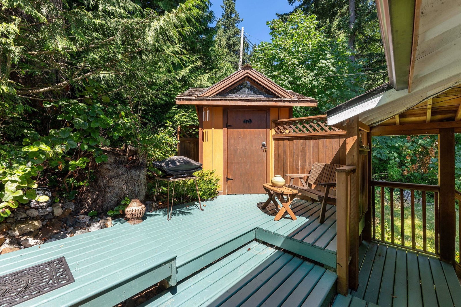 This charming & cozy vintage Bowen cottage is a perfect island getaway. From the front door you are welcomed with a beautiful view of the ocean looking out to Bowen’s shoreline and the Gulf Islands in the distance. The spacious south-facing deck is where you’ll spend time lounging with a book or gazing at the beauty of a full moon reflecting on the water. Inspired by the ocean there is a delightful deep turquoise front deck and painted wood floors on the main level. Downstairs is cheery with the terracotta painted floors and large windows with ocean views. Updates include a newer septic system, roof, gutters, and more. The community dock at Eagle Cliff beach (a 5 min. walk) is a popular place for locals to hang out and swim, and you can also tie up your dinghy during the summer season.