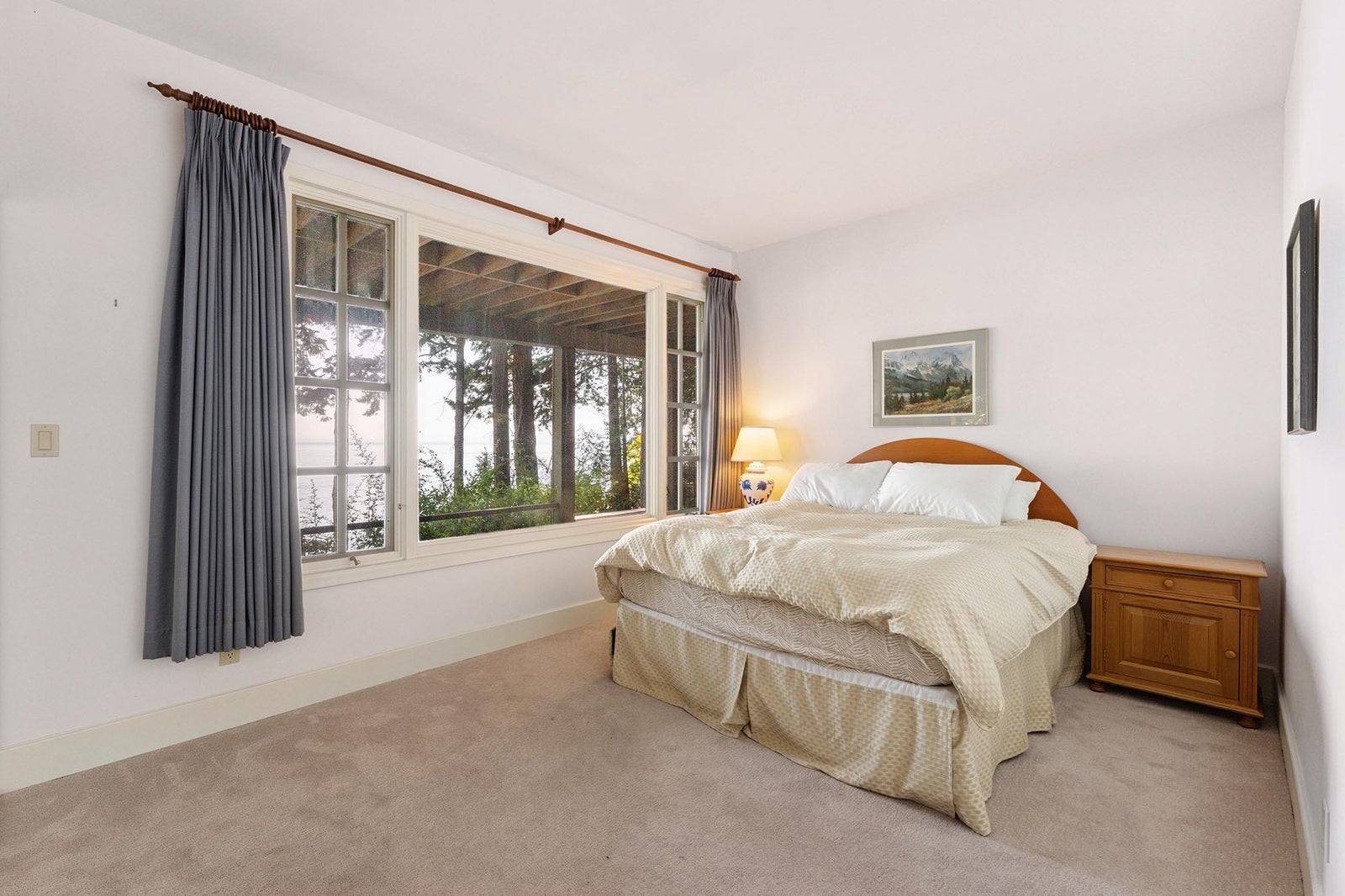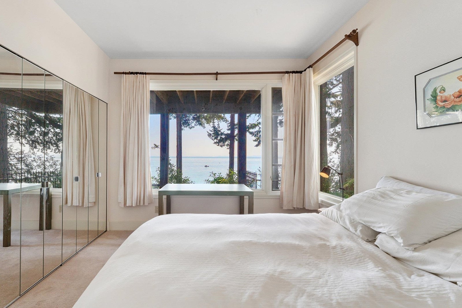 Fairweather Point – an enclave of architectural WATERFRONT homes sits on the South Shore of Bowen with views from Vancouver to the Gulf Islands. The coast here is alive with wildlife year round including seasonal visits from Humpbacks & Orcas. With a gently sloping backyard and a path of stone steps down to the water, you can go swimming any time. The spectacular views start at the front door and are showcased in almost every room. A dramatic 15’ barrel ceiling in the living room is the focal point of the open plan living/dining/kitchen. All rooms on the main floor have access to a 600+ sf south-facing deck, including the primary suite. Downstairs is a huge family room with French doors to the backyard, plus 3 more bedrooms. Excellent value for low bank WATERFRONT on Bowen Island.