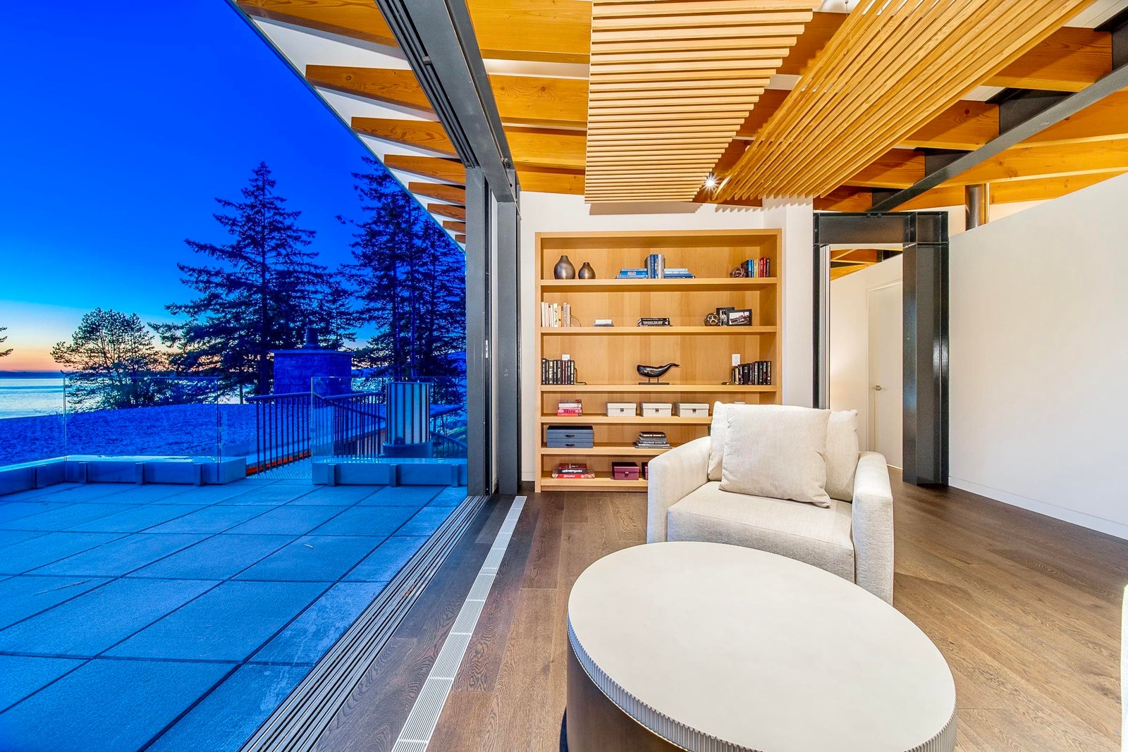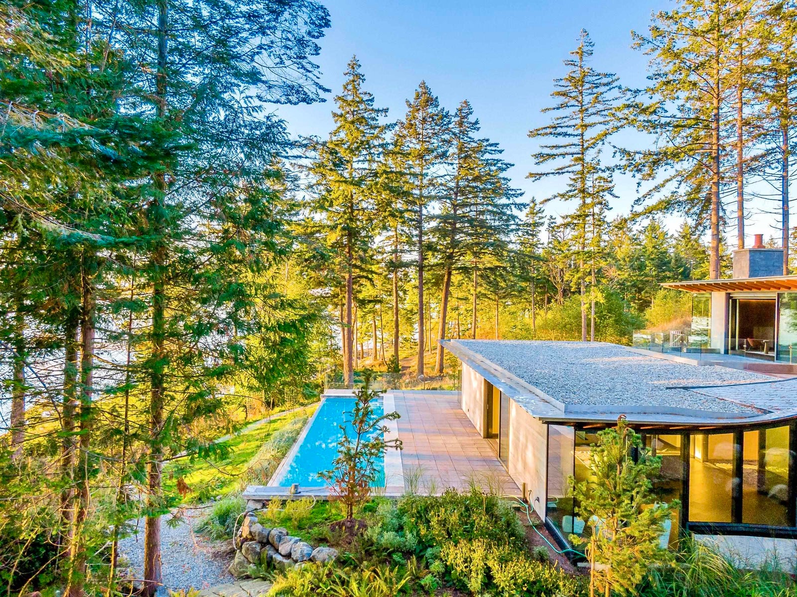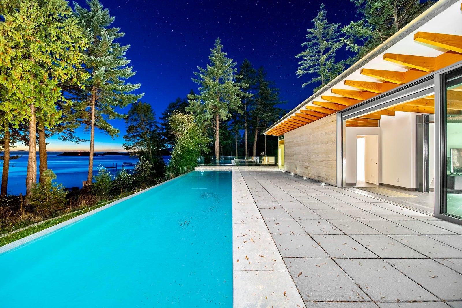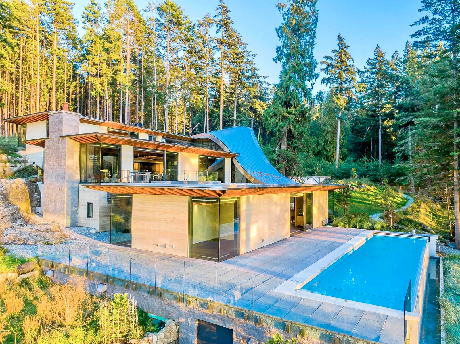 Sculptural concrete & wood masterpiece by renowned architect, Paul Grant - dynamic interplay between indoors & outdoors. At Cape Roger Curtis Lighthouse in lush forests w/ gorgeous ocean views. 10,000+ sf home w/ terraces & water feat.s. Main w/ voluminous foyer, generous living, dining, lounge & social kitchen. Lower for entertainment, w/ casual living, media, wine cellar, games area, 2 bdrms, all to infinity pool w/ ocean views. Up is private family area. Hi capacity laundry, strge, mech. & mud rms. Designed w/ care for biodiversity of The Cape on Bowen, the home feat.s geothermal, solar power & rainwater recycling, remote control security, blinds, lights & music & back-up mechanical system. This residence provides an impenetrable sense of peace & joy. Natural boundary frontage 396 ft.