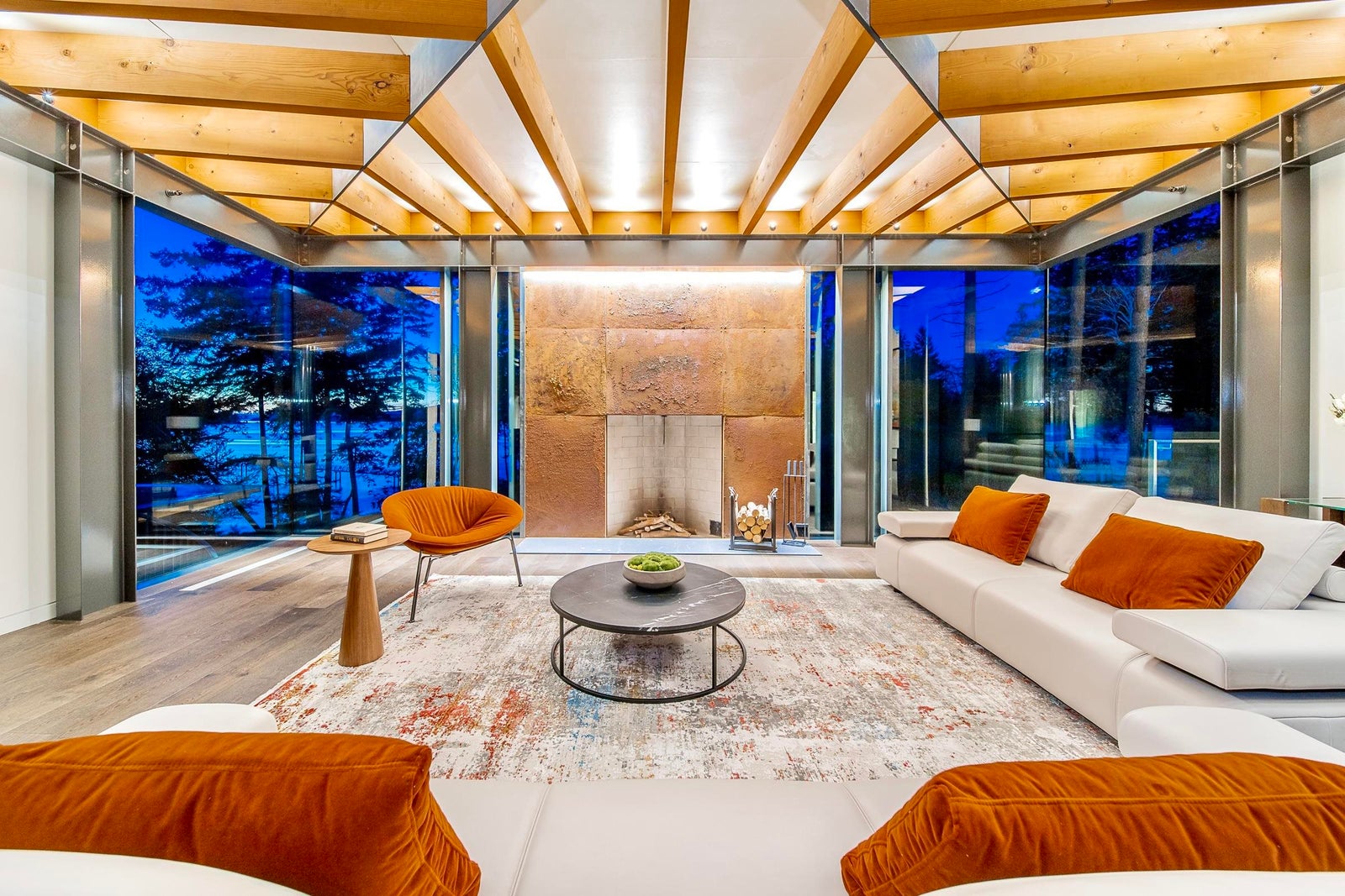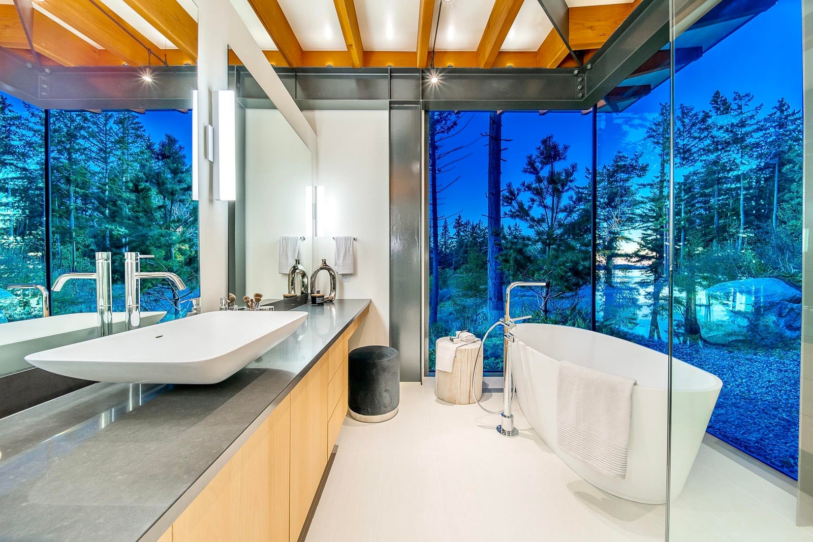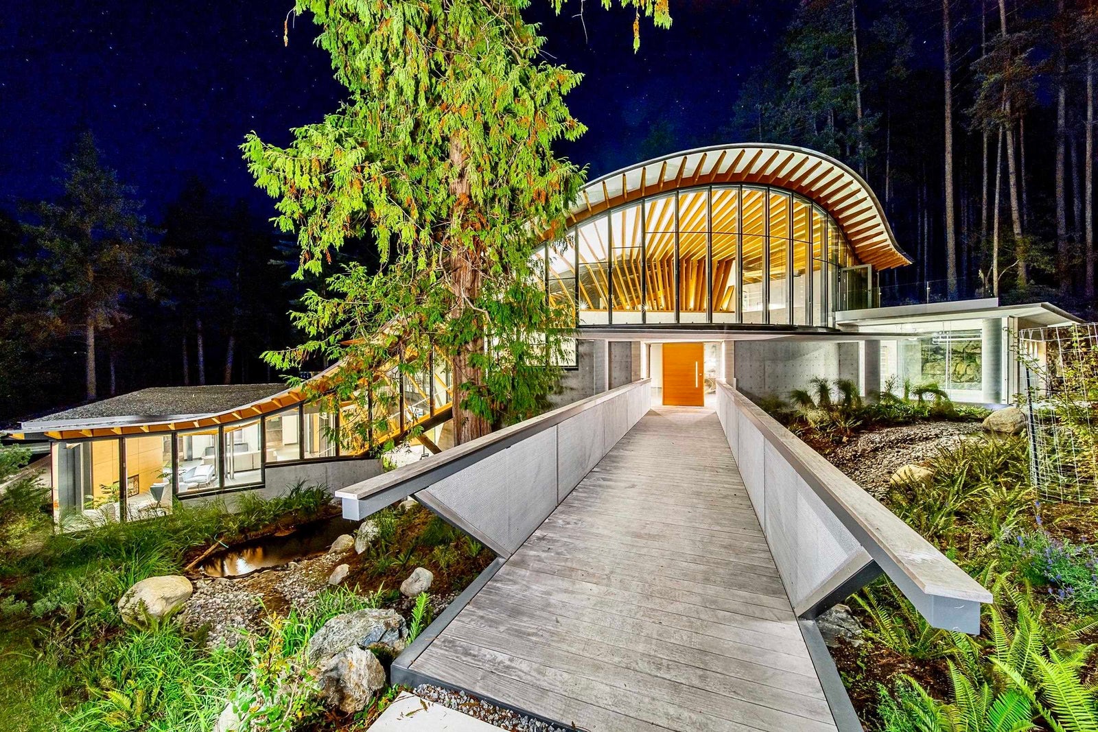 Sculptural concrete & wood masterpiece by renowned architect, Paul Grant - dynamic interplay between indoors & outdoors. At Cape Roger Curtis Lighthouse in lush forests w/ gorgeous ocean views. 10,000+ sf home w/ terraces & water feat.s. Main w/ voluminous foyer, generous living, dining, lounge & social kitchen. Lower for entertainment, w/ casual living, media, wine cellar, games area, 2 bdrms, all to infinity pool w/ ocean views. Up is private family area. Hi capacity laundry, strge, mech. & mud rms. Designed w/ care for biodiversity of The Cape on Bowen, the home feat.s geothermal, solar power & rainwater recycling, remote control security, blinds, lights & music & back-up mechanical system. This residence provides an impenetrable sense of peace & joy. Natural boundary frontage 396 ft.