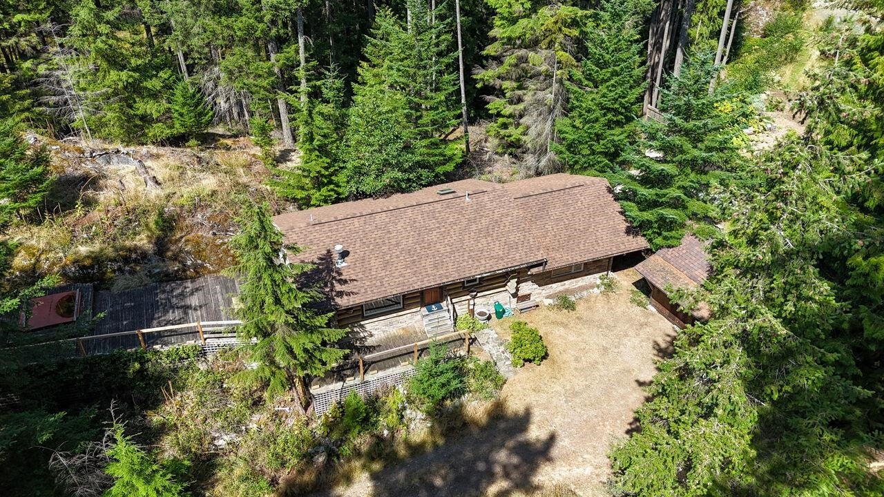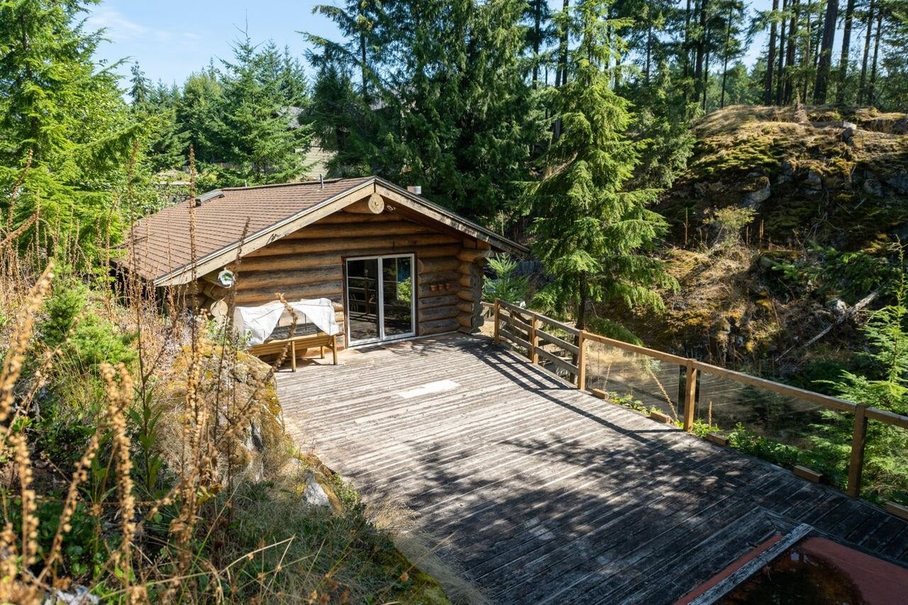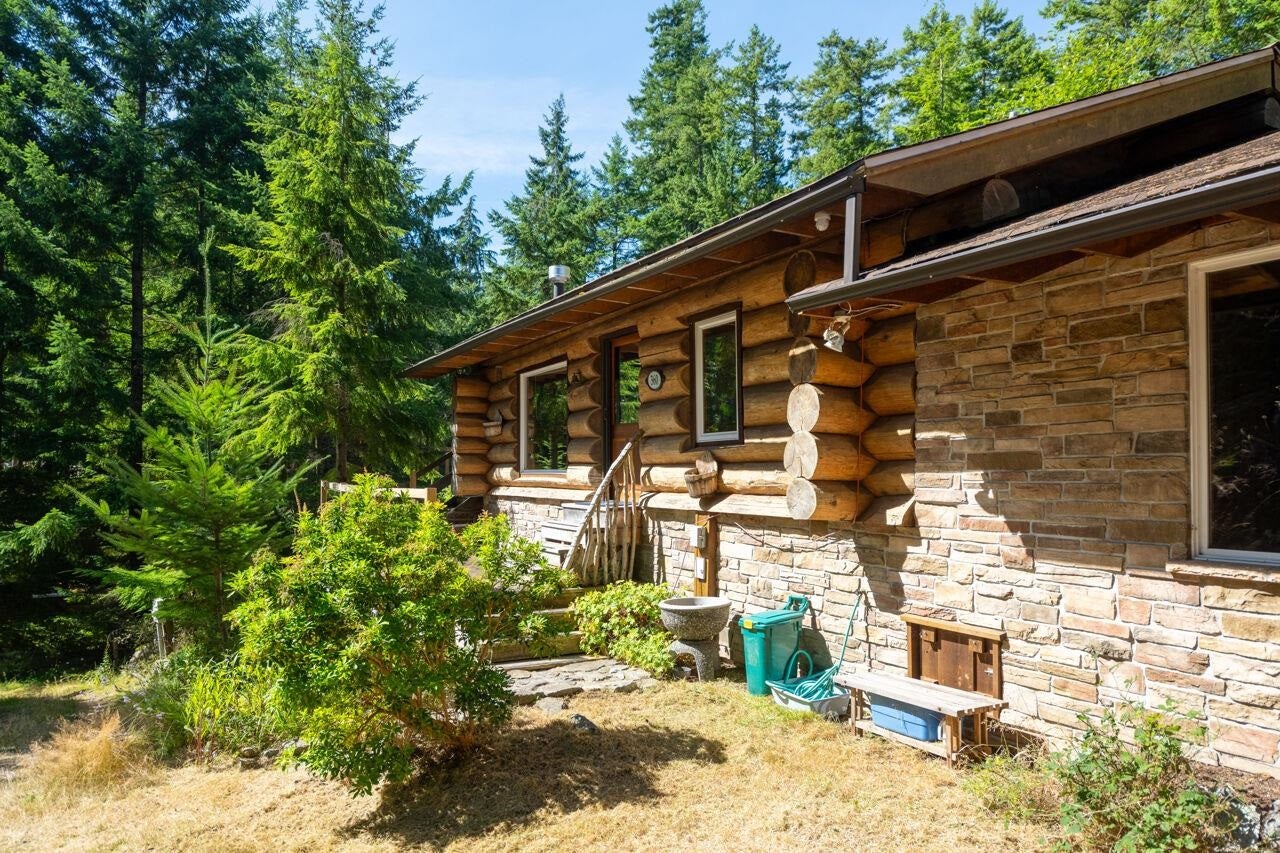 Nestled on a sun-drenched 2.5-acre lot bordering Josephine Lake, this delightful 2 bed log cabin offers the perfect blend of rustic charm & modern comfort. Surrounded by nature, this home features an open-concept living space w/ stunning wood beams & a cozy wood-burning stove, creating an inviting atmosphere to relax & unwind. Embrace a peaceful retreat w/ picturesque views of the surrounding forested landscape. Step outside to your expansive, private lot where you can enjoy gardening, outdoor activities & loads of sunshine. Highland Estates is known for its proximity to nature w/ hiking trails, beaches & all the charm of Bowen Island just a short drive away.