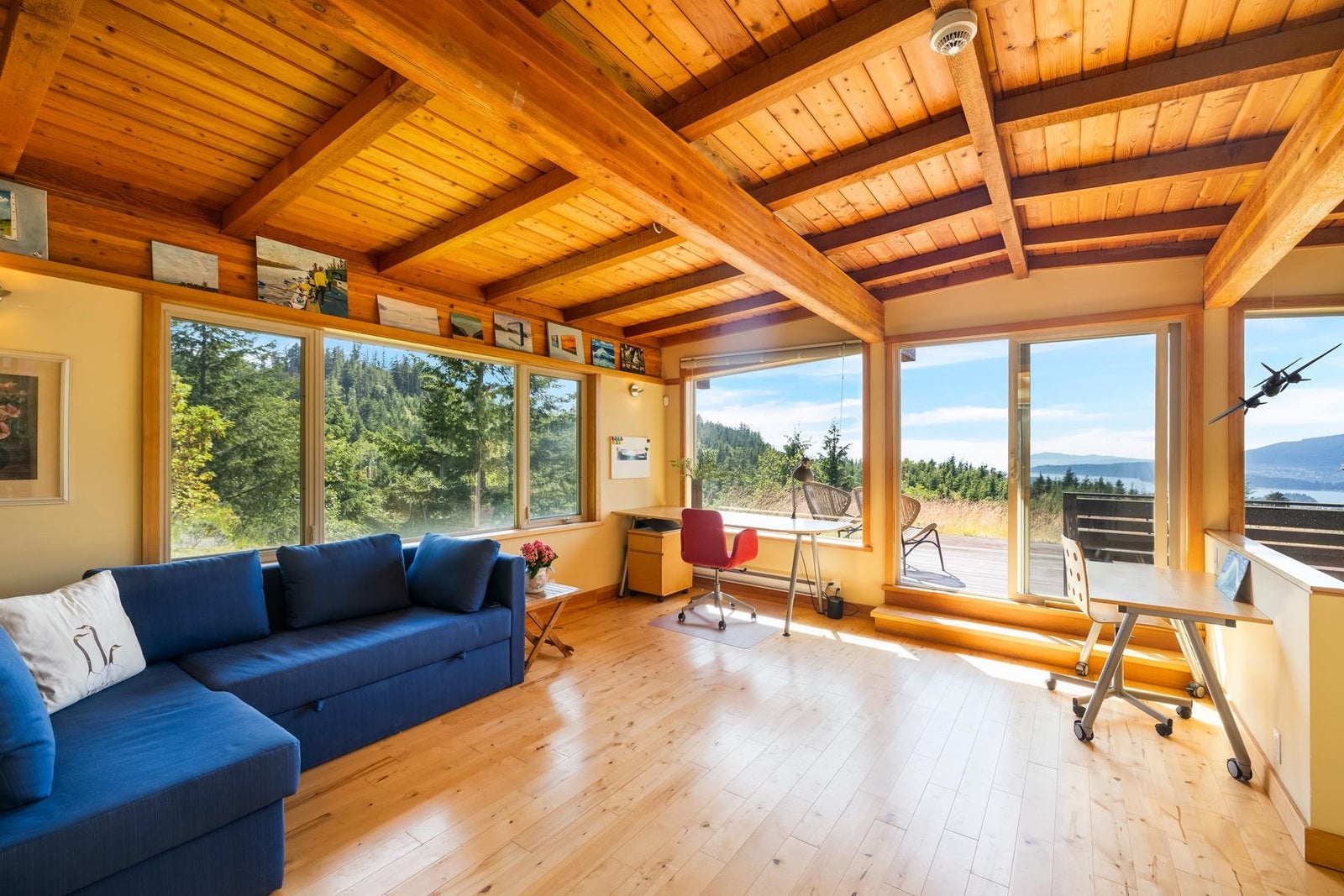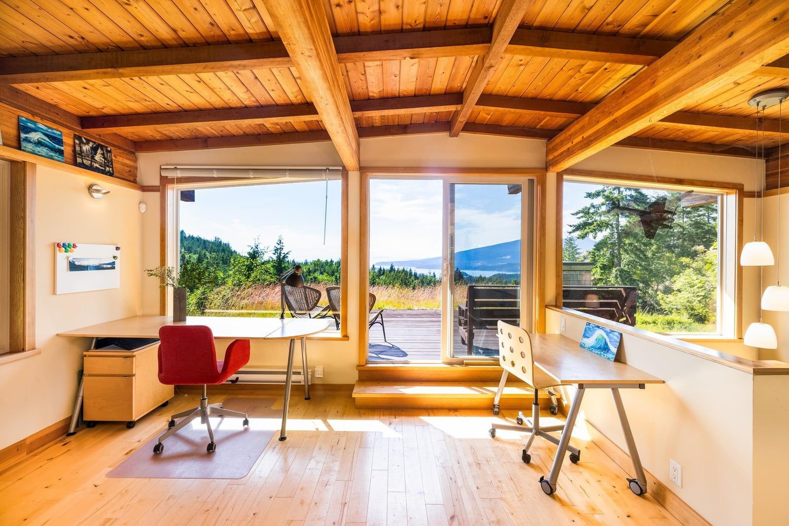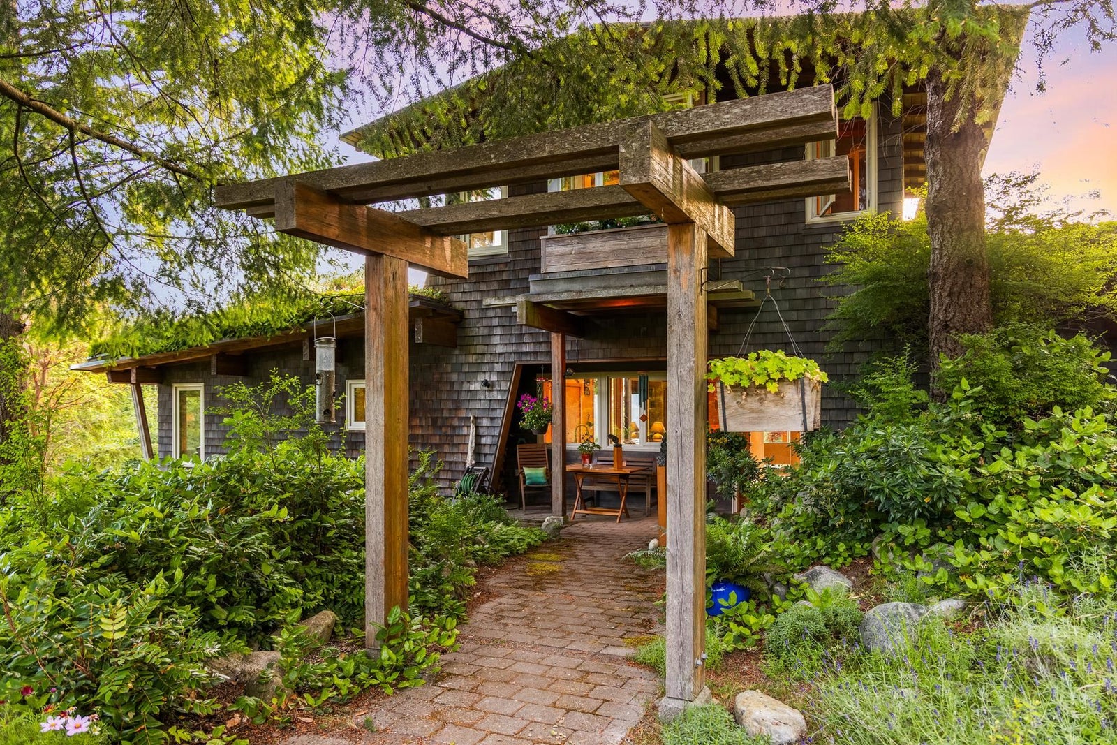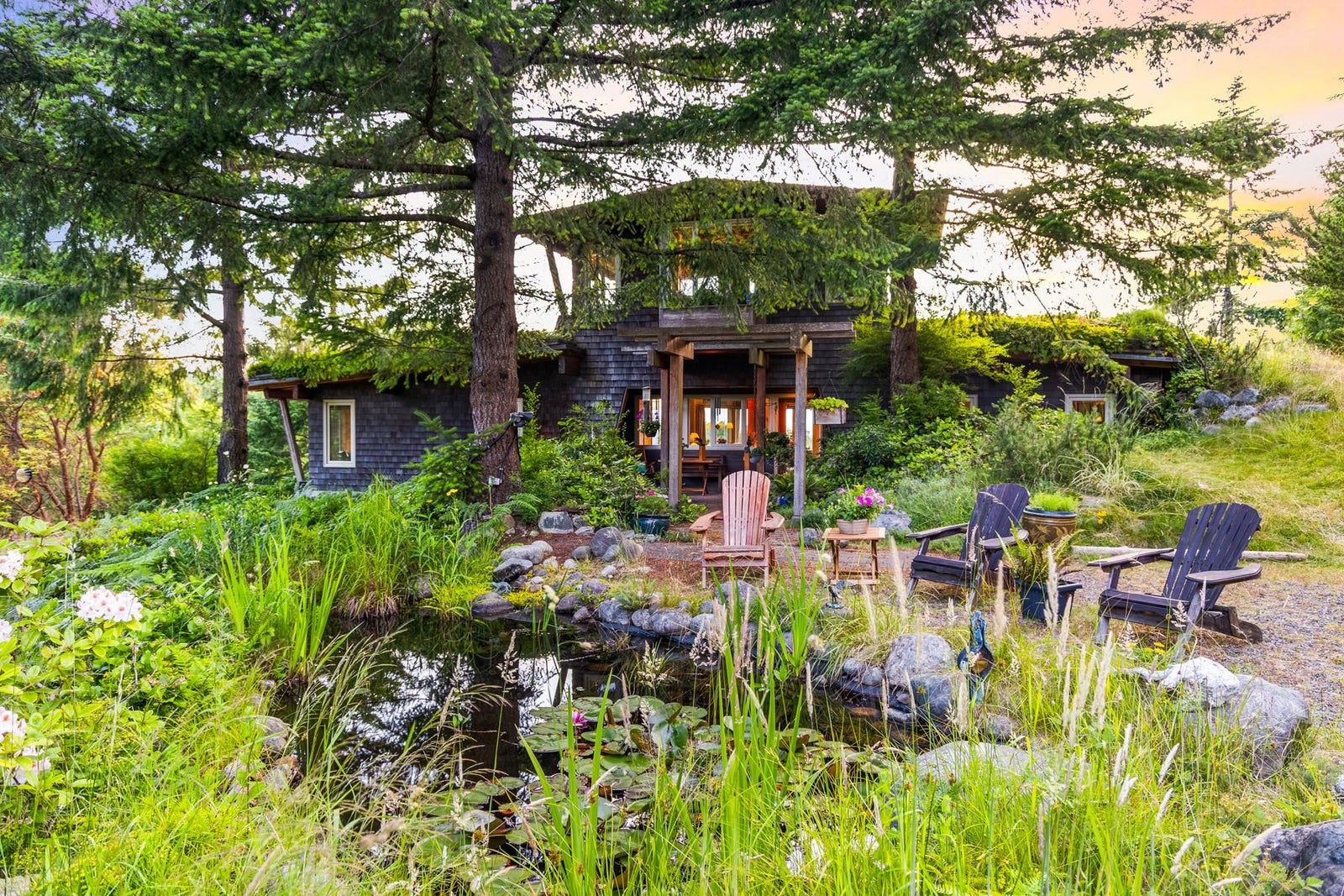 A one of a kind home where art, nature, and design converge. Designed by A.W Peters w/ the intention to invite nature in, enjoy breathtaking views from every room. Set on 2.5 private acres, every sunset feels like a painting. The living roof blends into the hillside, offering natural beauty & insulation. Featuring warm wood ceilings, chefs kitchen w/ red marble counters & wall of west-facing windows. 3 oversized bedrooms each w/ ensuite, or use 3rd as additional living space. Built to inspire & stand the test of time, quality shows in every detail. Used only as a vacation home, it's in immaculate condition. Cozy up by the weathered steel fireplace, enjoy multiple patios, a peaceful pond & workshop below. You won't find another home quite like this.