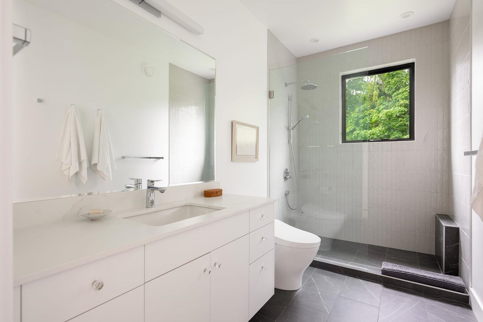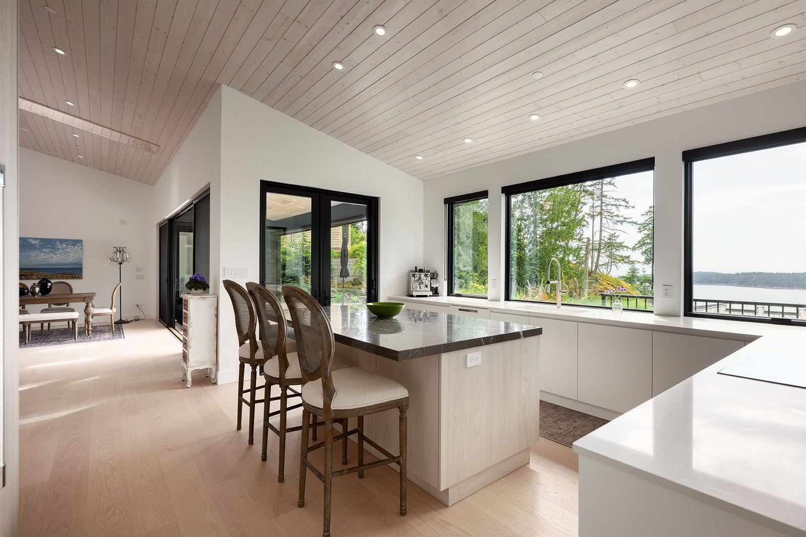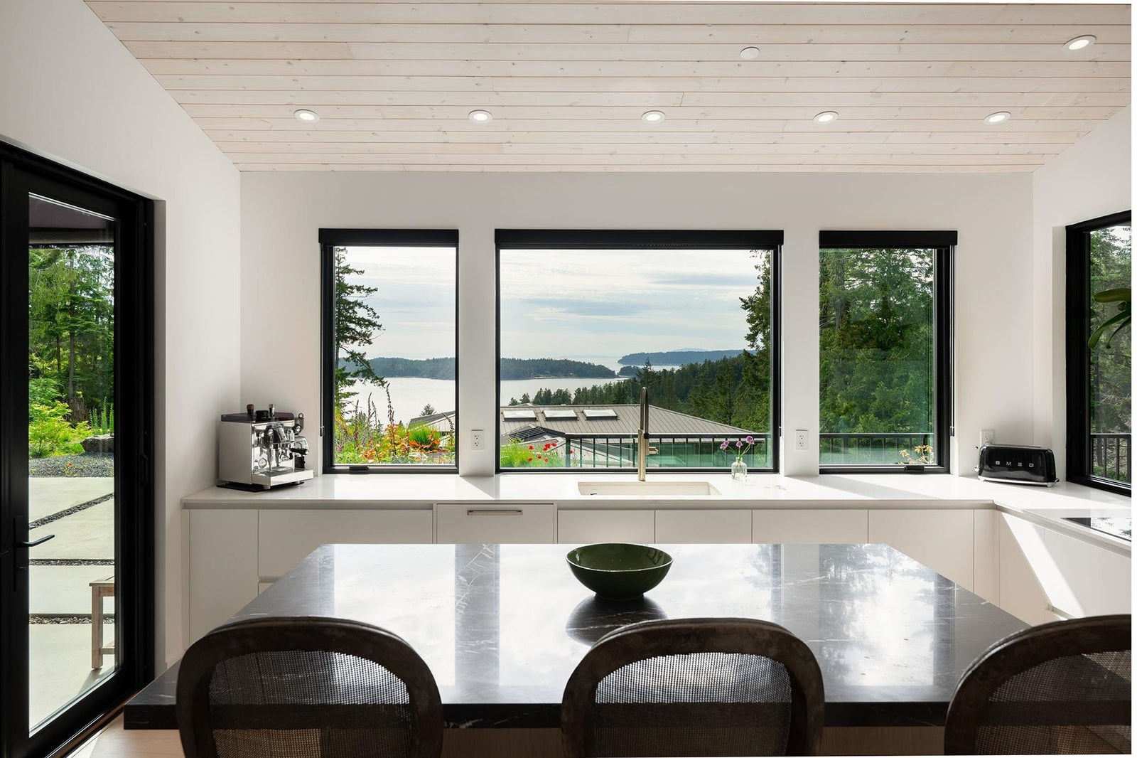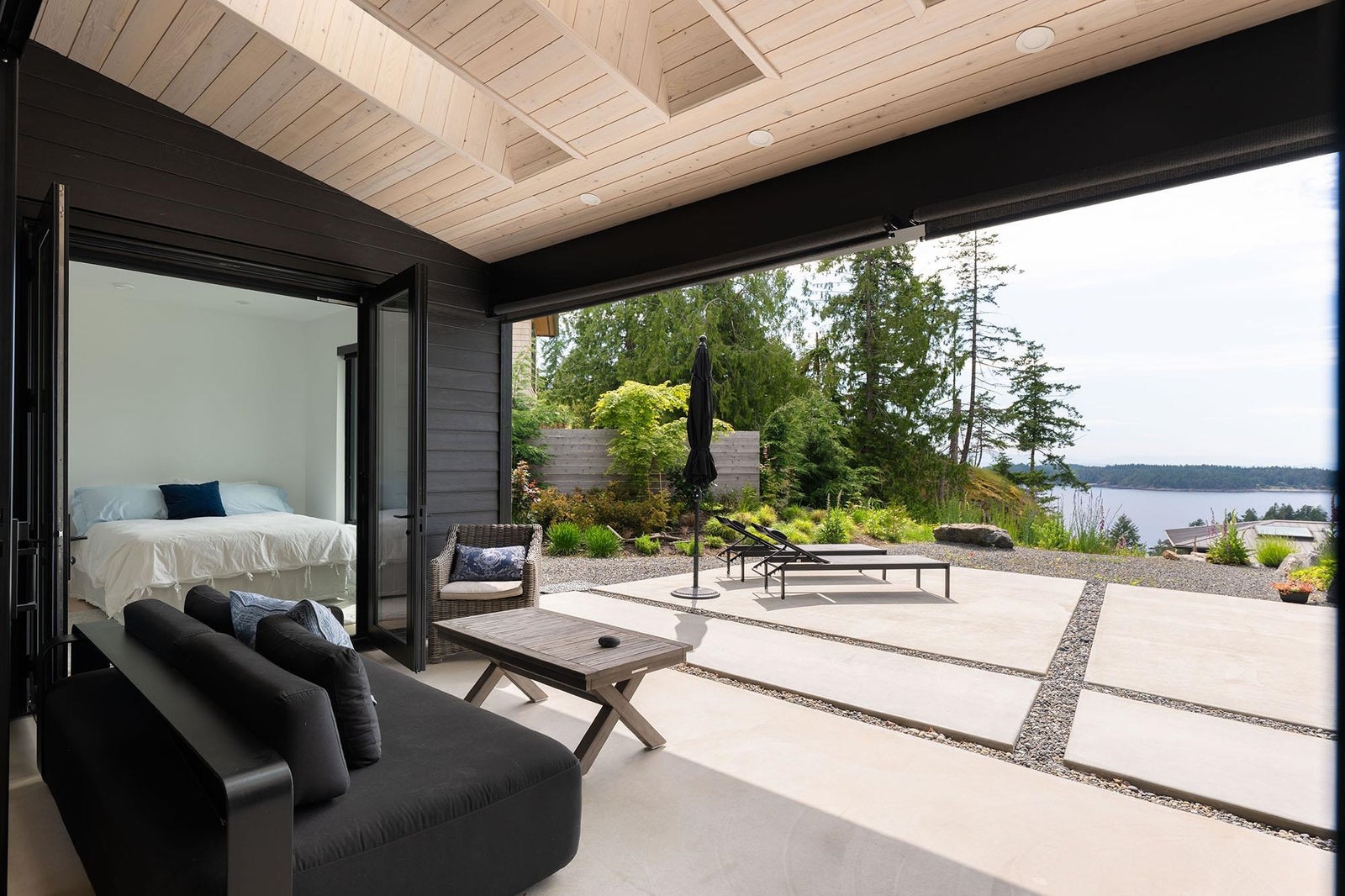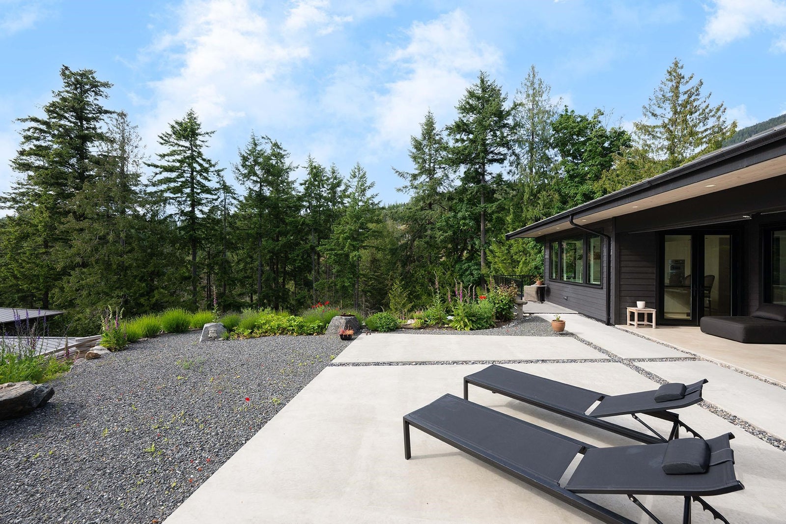Luxury & sustainability blend elegantly here on the West side where ever-changing coastal views mesmerize. Designed to focus on healthy living with maximum natural light, there are skylights, high ceilings, and tall windows, most of which open. When it’s too hot or too cold the HRV (with HEPA filter) and radiant heated AND cooled flooring (controlled by a heat pump) keep your space just as you like it. During a power outage there is significant battery backup. Built with FireSmart principles, there is fibre cement board cladding, drought-tolerant landscaping, and a metal roof that collects rainwater into a state-of-the-art water treatment system. Surrounded by mature forest with hiking trails at your doorstep, plus those views, you will feel privileged to make your home here at Evergreen.