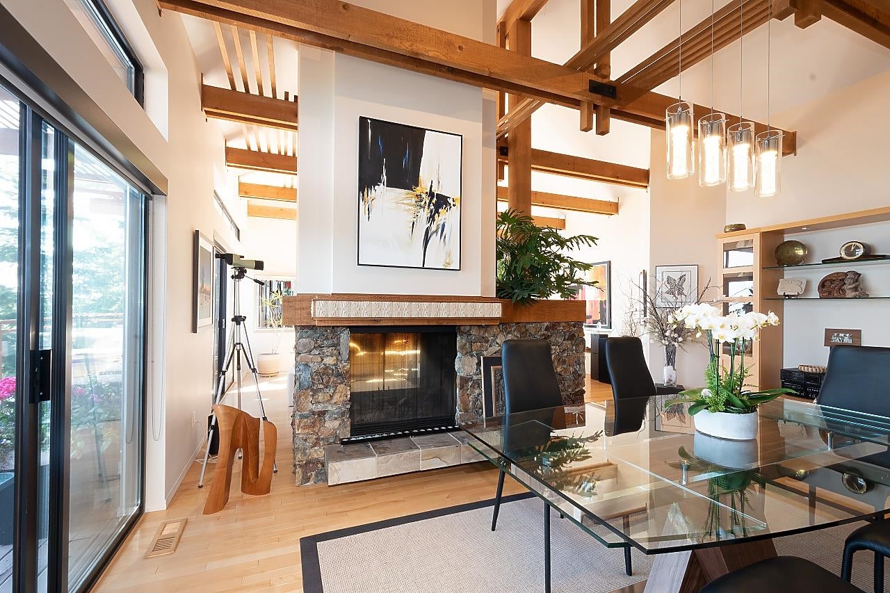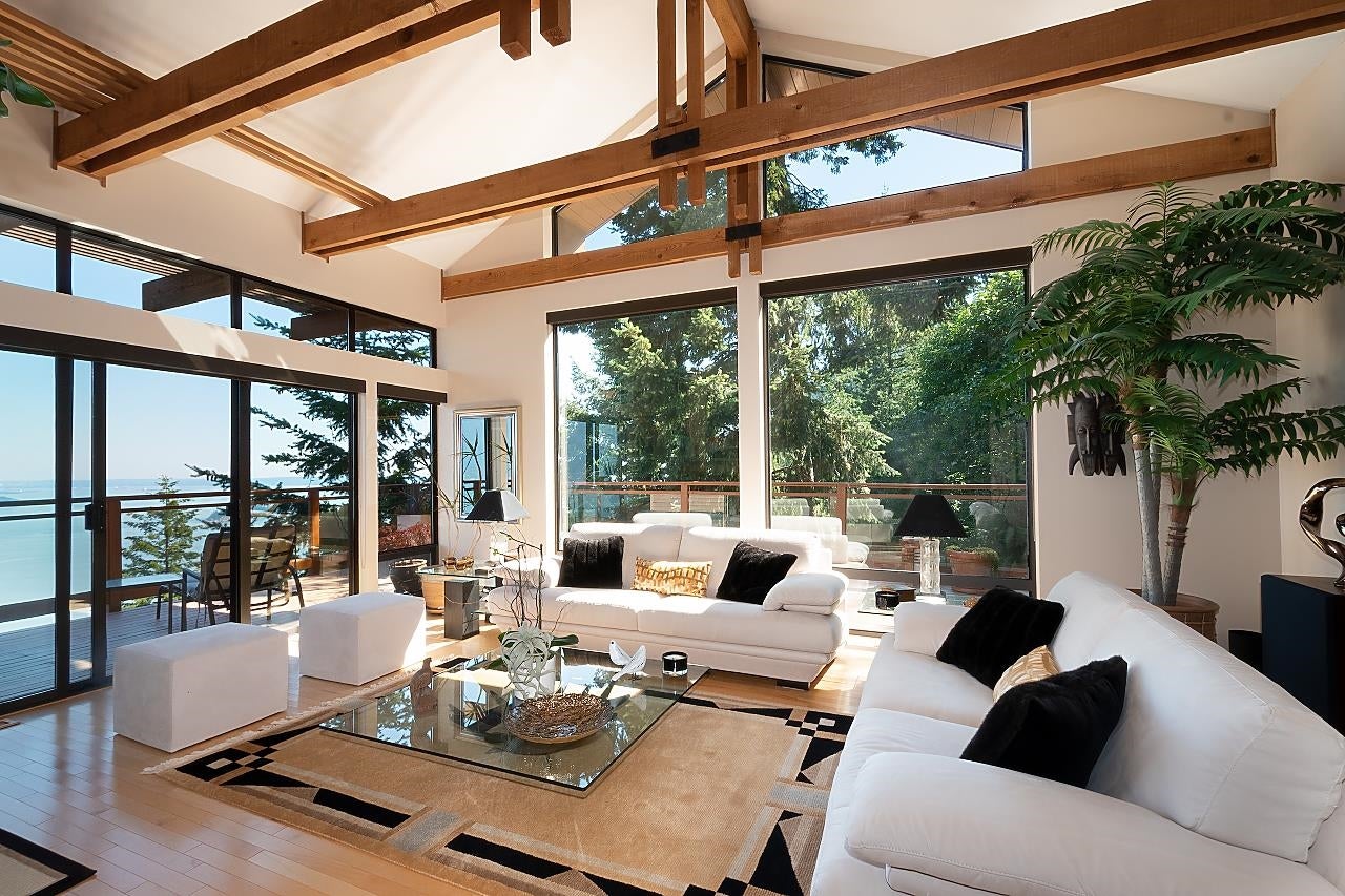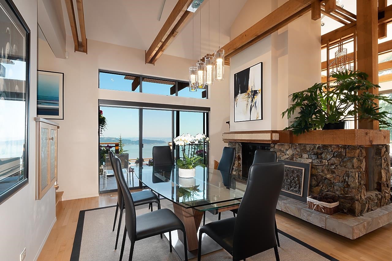 This stunning architectural marvel has one of the best views on Bowen - 180 degrees spanning the North Shore Mountains, Mt Baker, Vancouver and all the way out across the Salish Sea. This 1.28 acre property is hidden away at the top of Valhalla for complete privacy, and is meticulously maintained inside and out with pride of ownership. A custom carved door greets you upon arrival, and opens into a timber-framed, vaulted main floor with multi-level decks cascading below. Two bedrooms, with a den that could be converted into a third. Strata-approved plans to add on an additional bedroom & bathroom are available. Also featuring two office spaces, plenty of storage, and a two car garage. This is a Bowen Home that must not be missed.