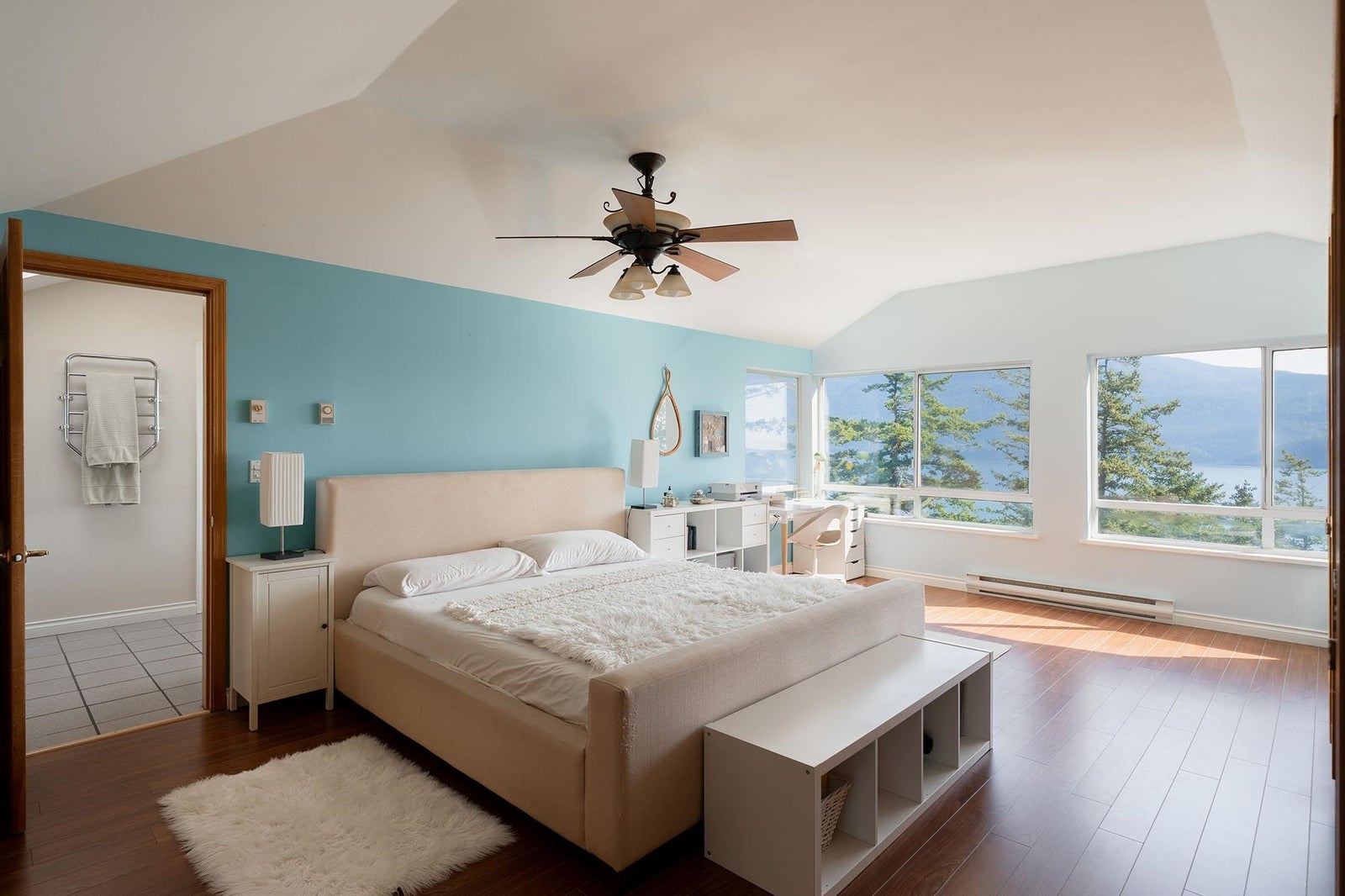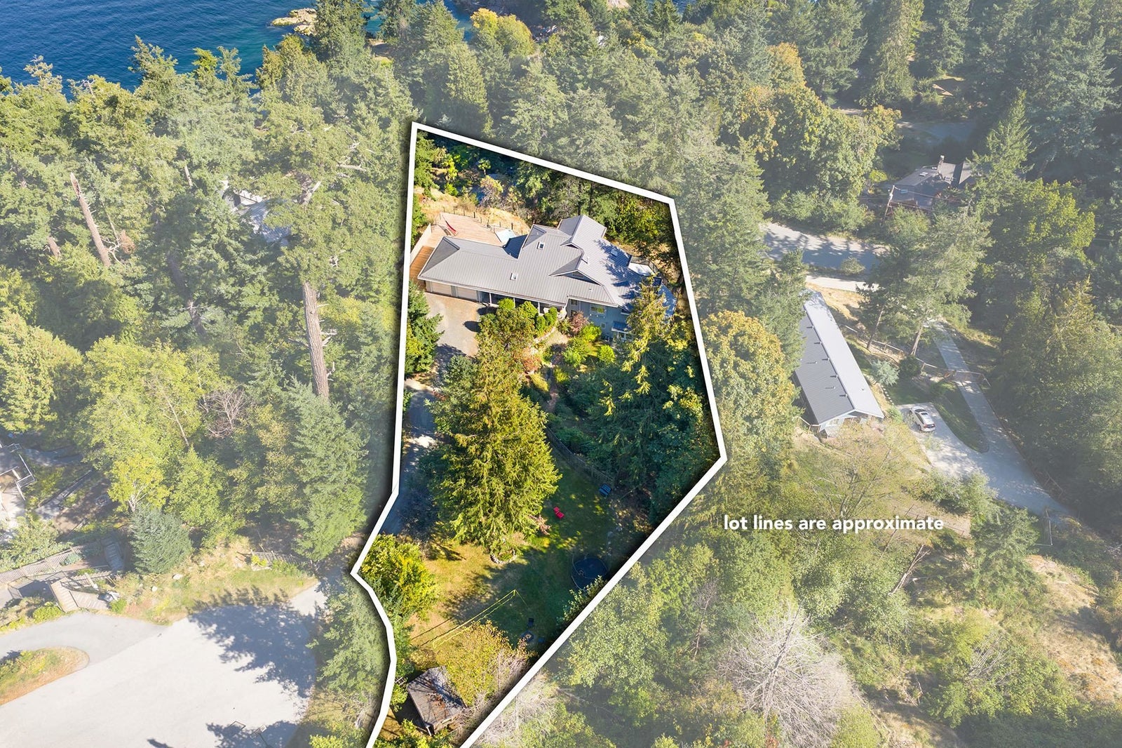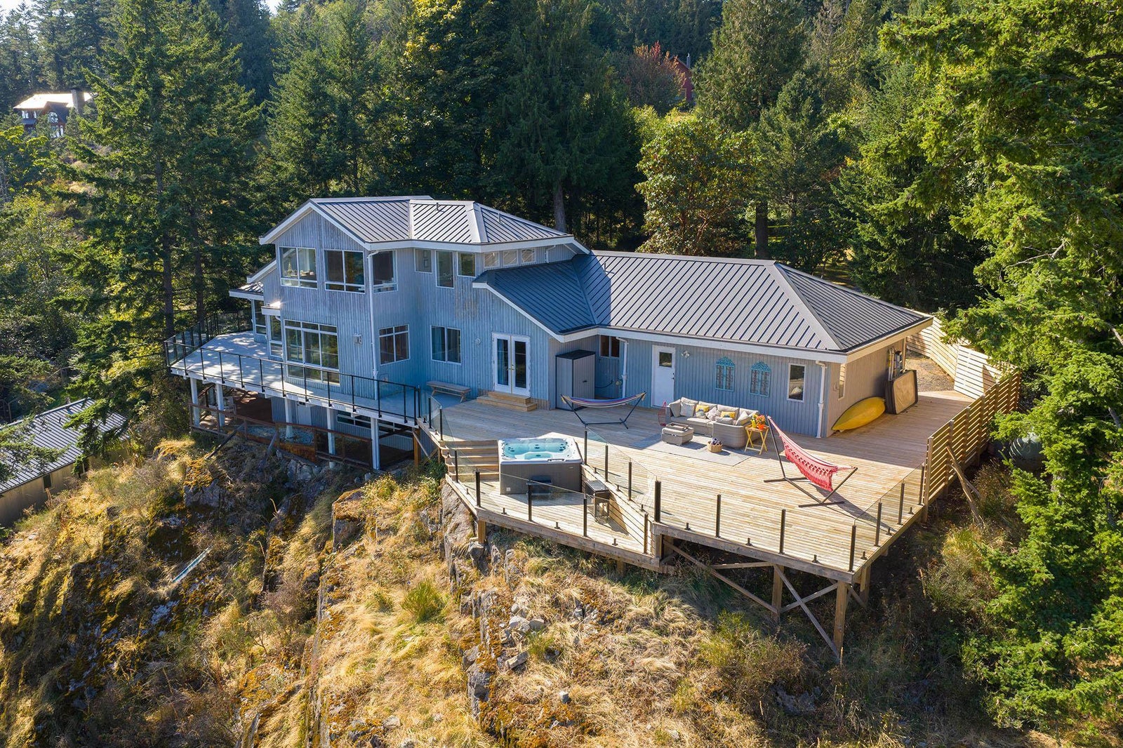 Panoramic ocean views, a 3600+ sf home with 5 bedrooms, and an acre of land with almost ¼ acre of flat lawn make this a rare combination. Along the tree-lined driveway is a spacious park-like area with room for family reunions, kid’s birthday parties, and gatherings around the firepit with friends. The 2400sf wrap around deck, with a new hot tub. provides awe-inspiring views of the ocean and mountains. With a desirable floor plan that features bedrooms and full bathrooms on every floor, this is a great home for large families and for those who need separate work-from-home spaces. The lower floor opens to a mature, landscaped garden that is fenced to keep the deer out and the dogs in. It's just a 5-minute drive to Snug Cove, and the school bus picks up and drops off at the driveway.
